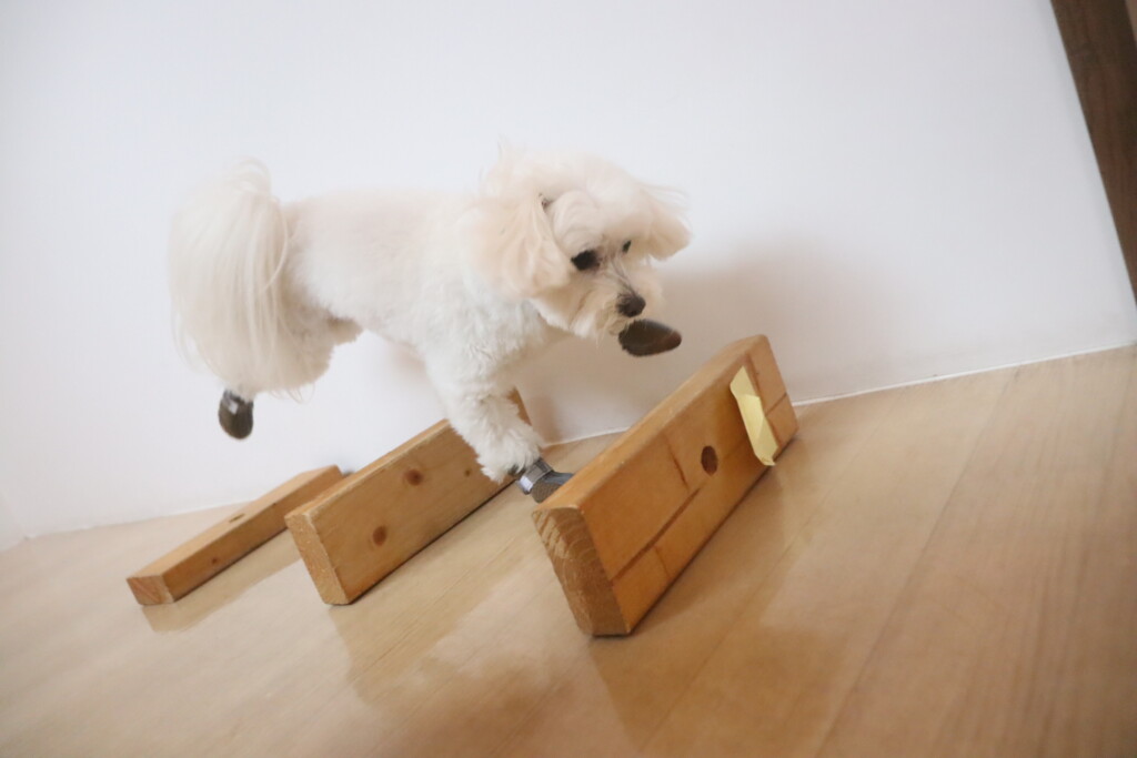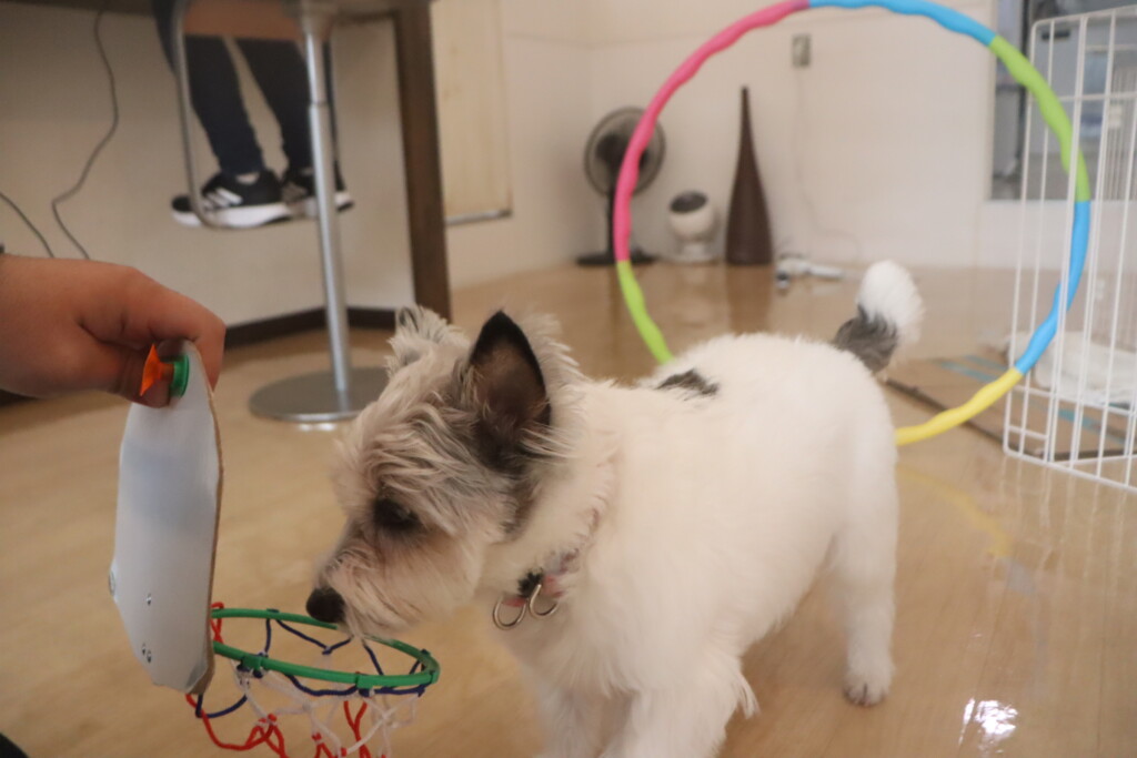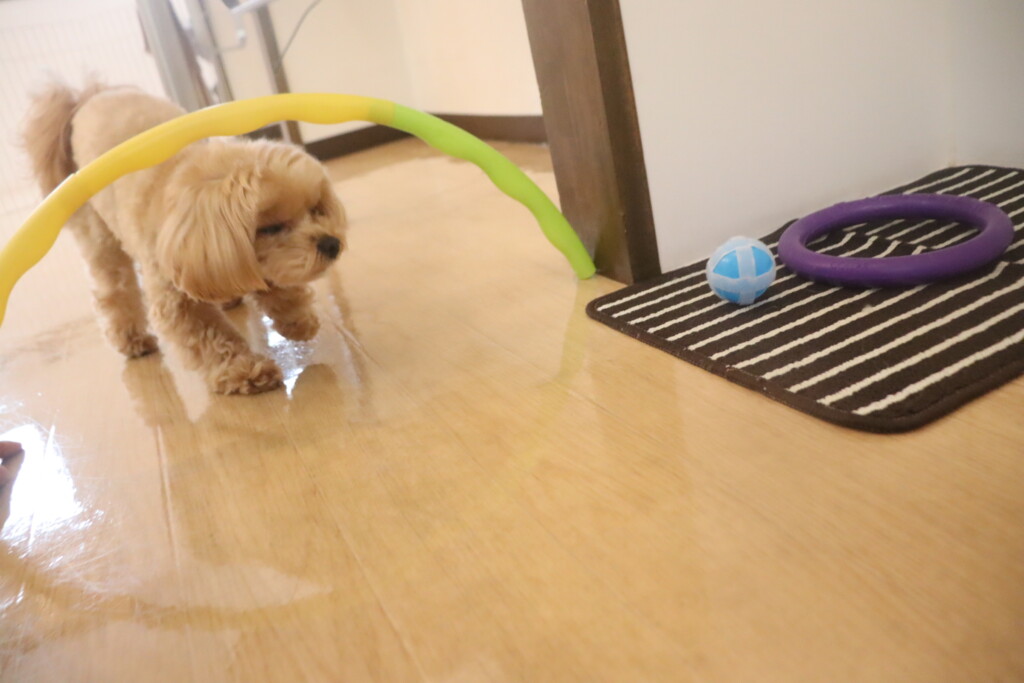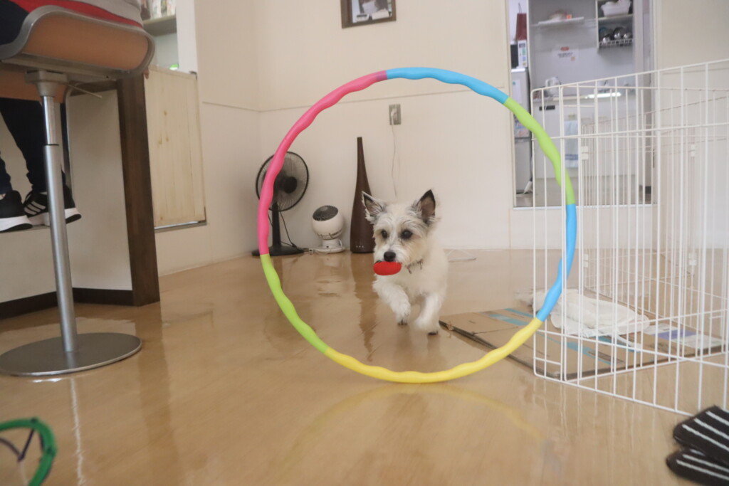 フラフープくぐりでは「もう少し下げてもらえます?」と前足で交渉し、