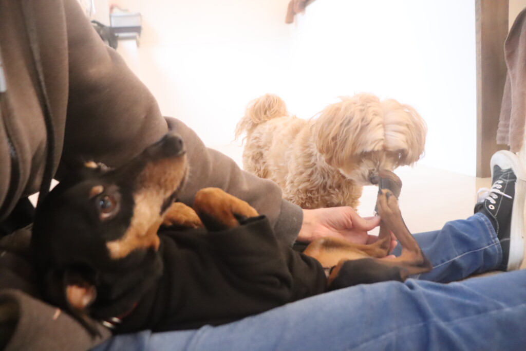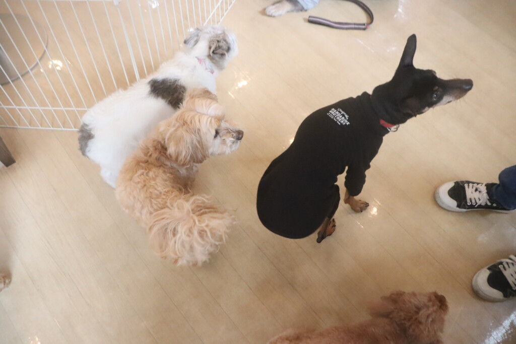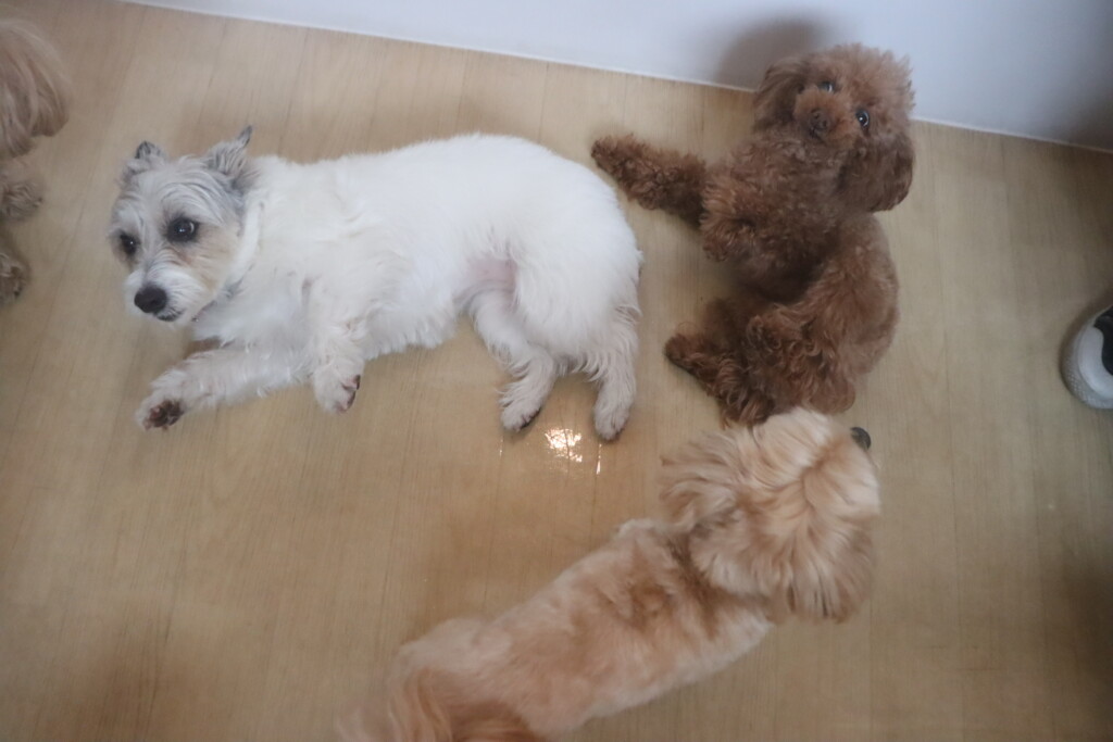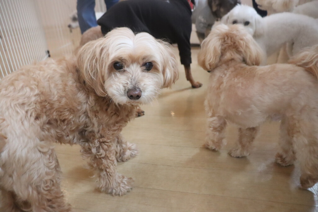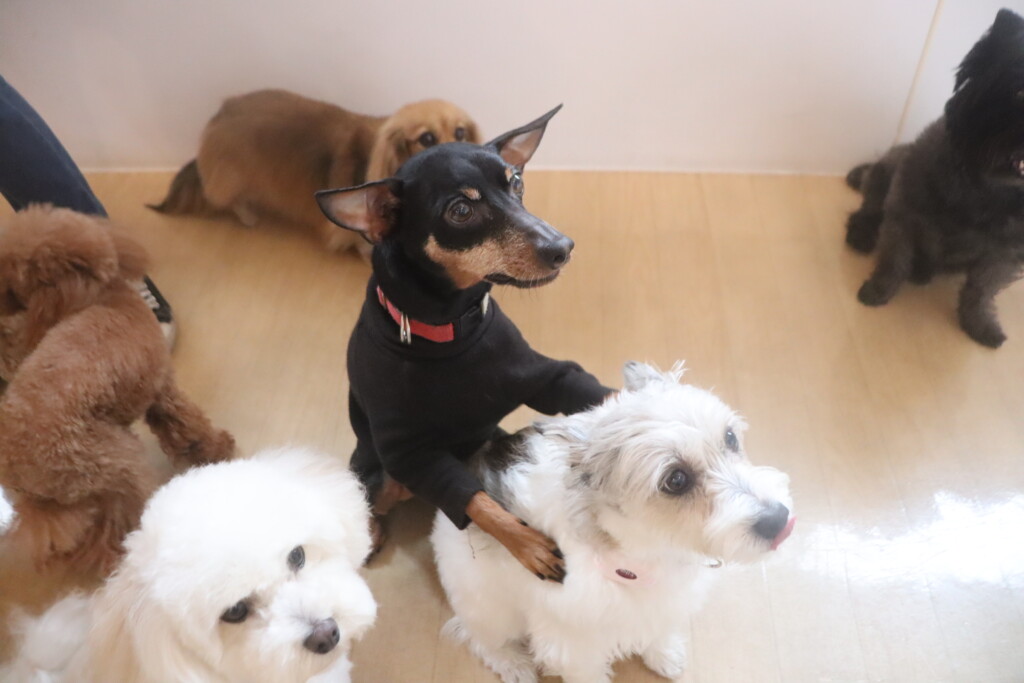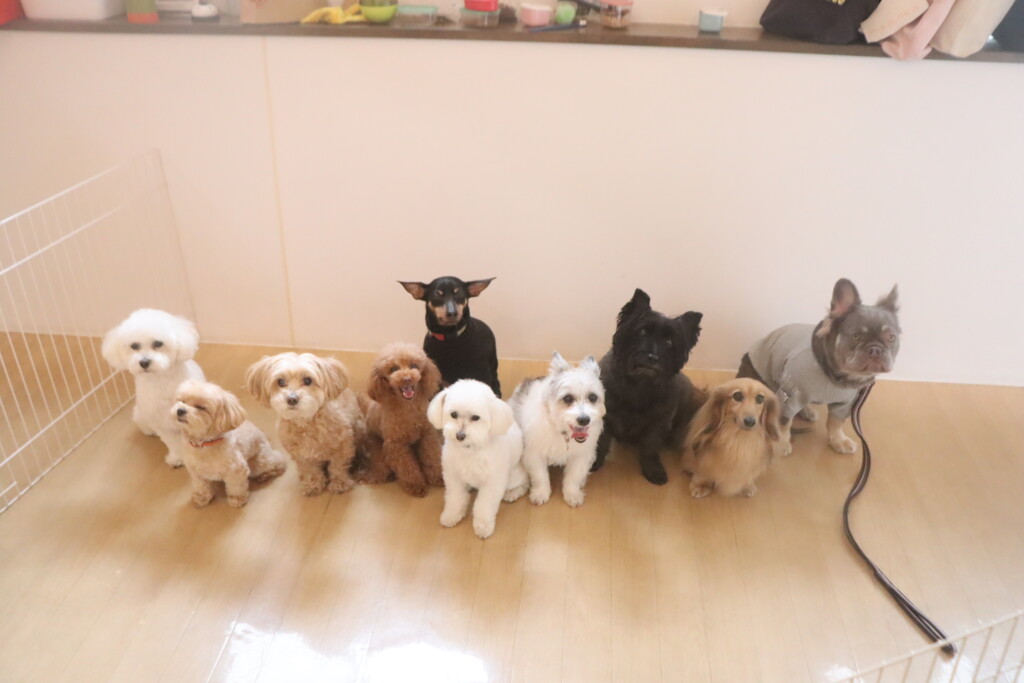 今日の保育園生は、ジャックラッセルテリアのソフィちゃん、フレンチブルドッグのハイちゃん、マルチーズ×トイプードルの陽向くん・うるくん・サンディちゃん・ゆずちゃん、トイプードルのくうちゃん、ミニチュアピンシャーのルアくん、ケアーンテリアのノンちゃん、カニンヘンダックスフンドのラテちゃんです!