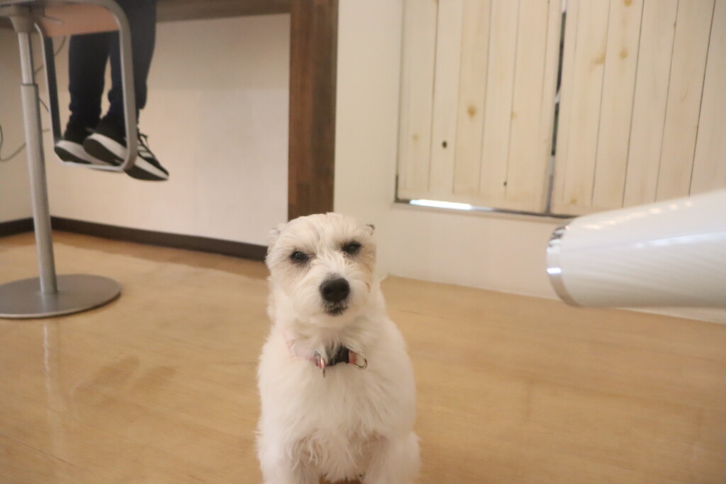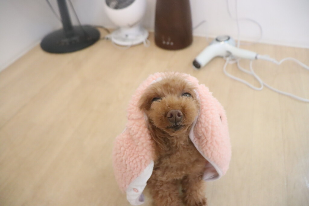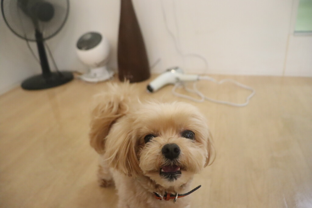 バリカンの音もちょっぴり苦手なようで現実逃避しようと必死な様子に笑ってしまいました😂
