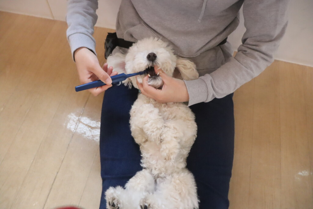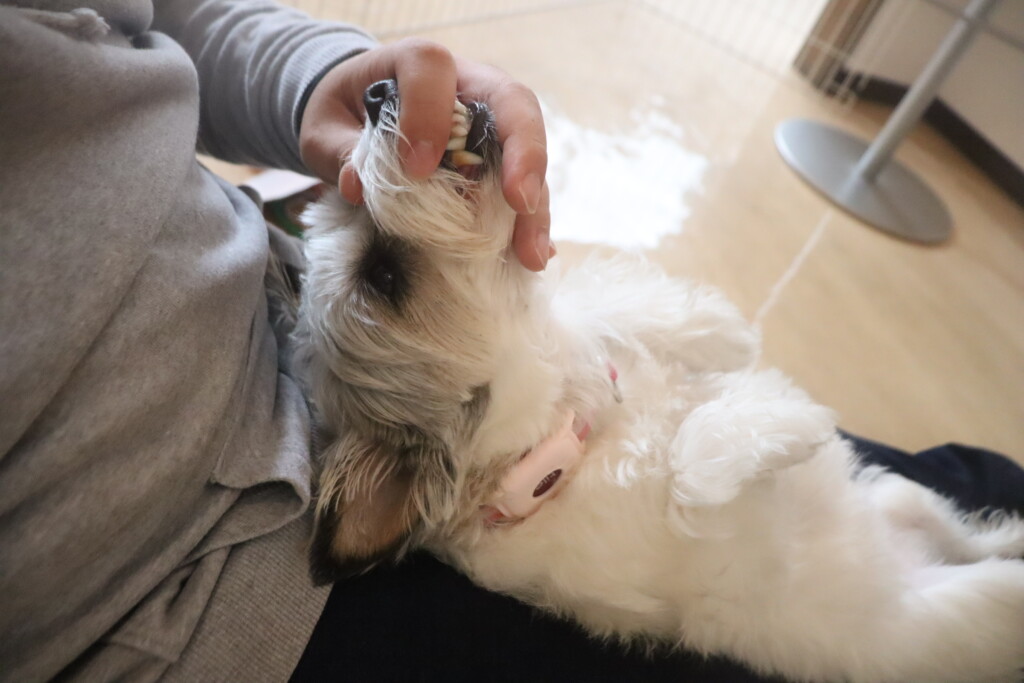 ソフィちゃんは前歯・犬歯周辺を次は嫌がらずに磨けるようにしていこうね!