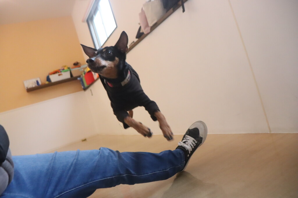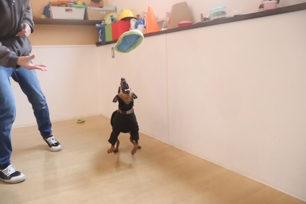 正面のキャッチと感覚が変わり苦戦していましたが、雨でお散歩に出られなかった分良い運動になったかと思います( *´艸`)