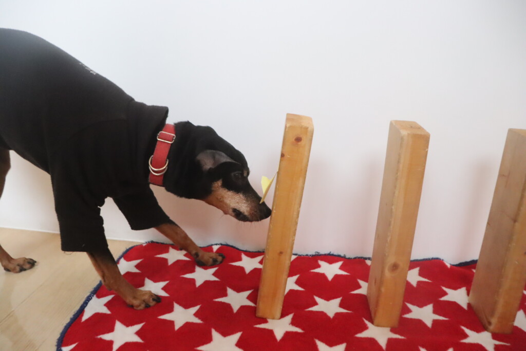 ダーツボールはマジックテープの音が苦手な様子でした…。