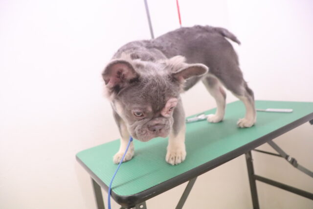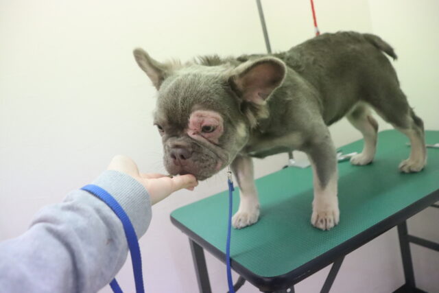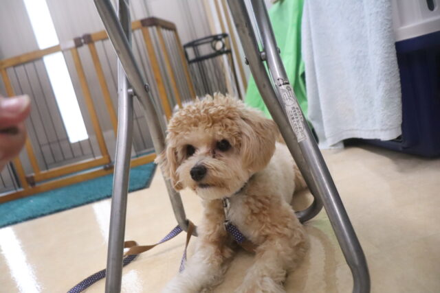 ハイちゃんはトリミング台慣れを行いました♪高い足場に不安そうなハイちゃん💦