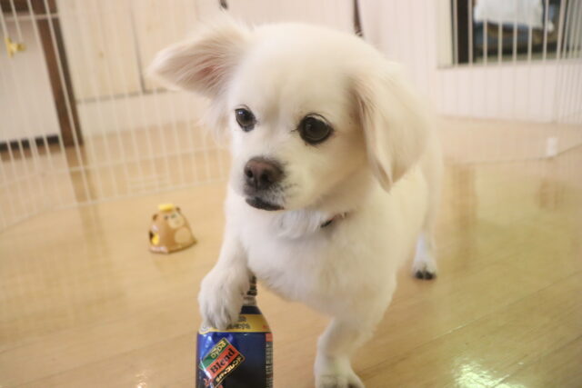 アンディくんは音が鳴る缶で物慣れを行いました!