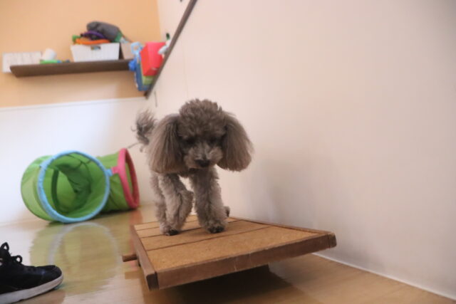 アンジュちゃんはシーソーで足場慣れを行いました!