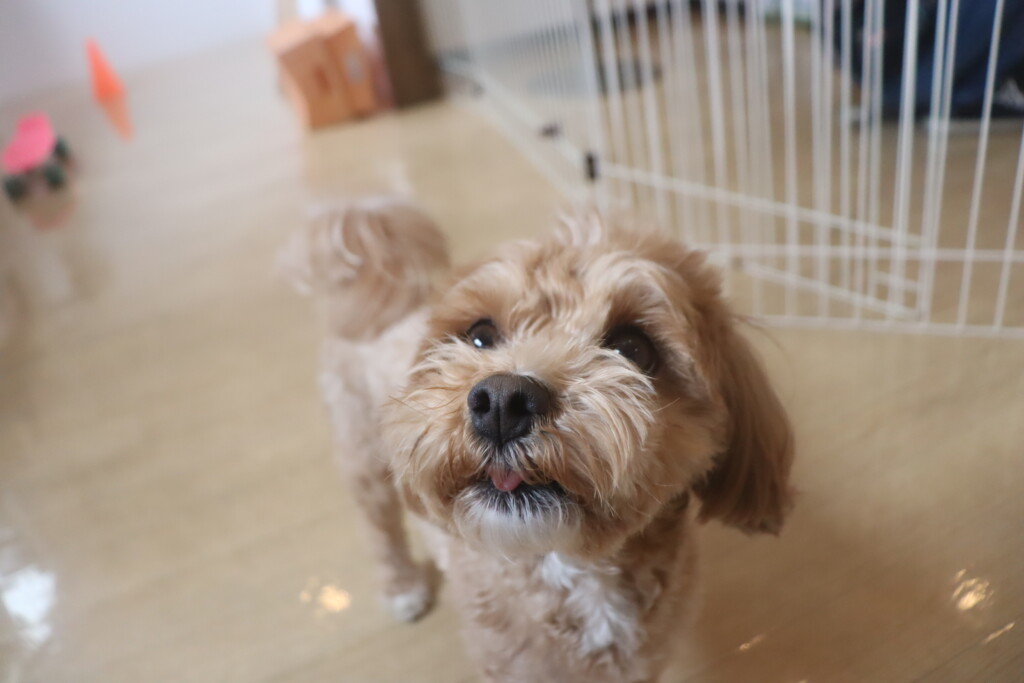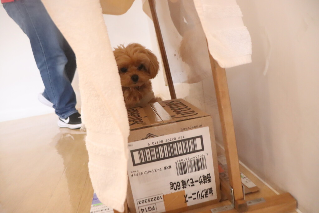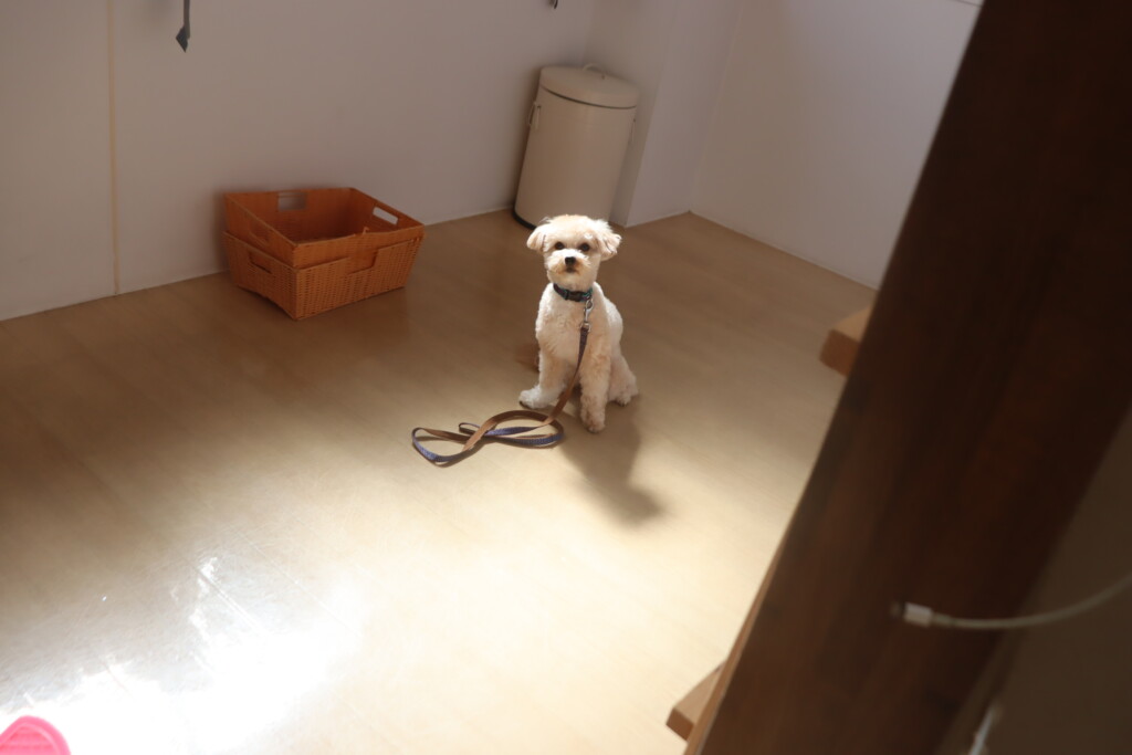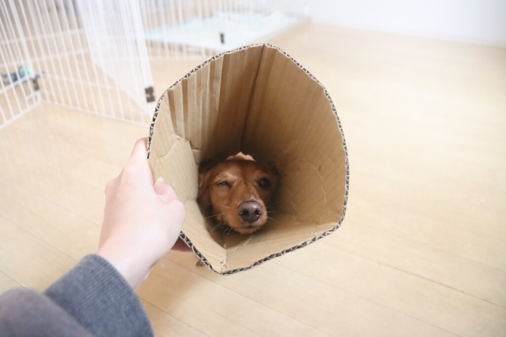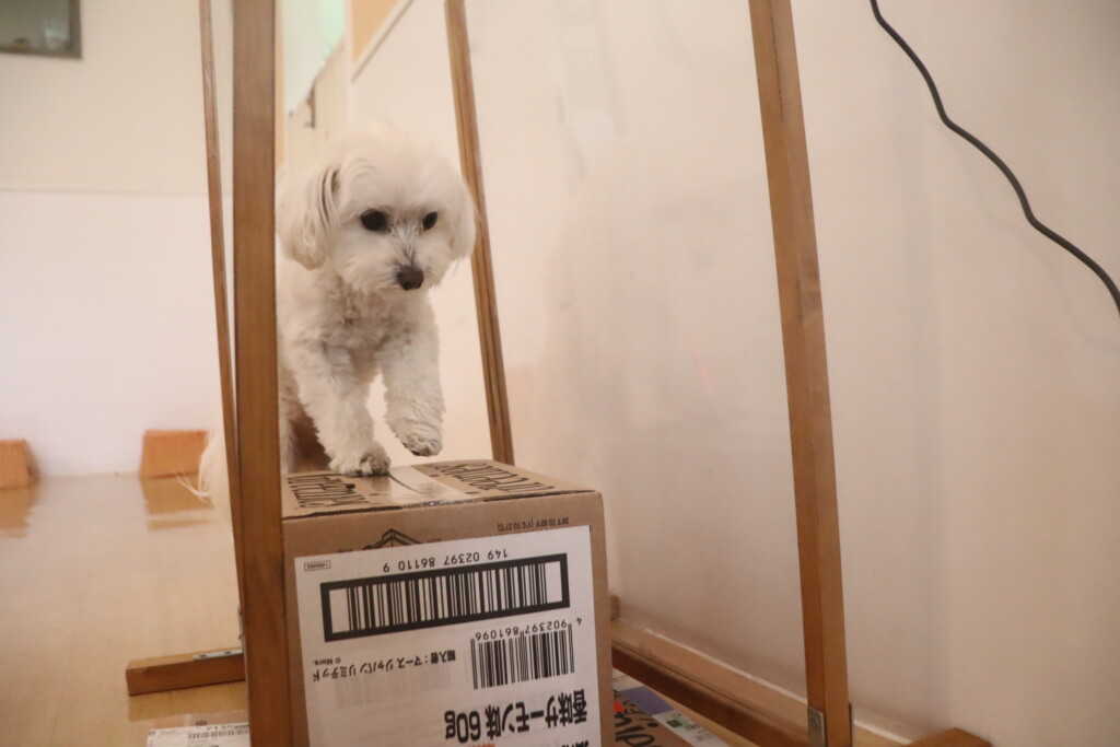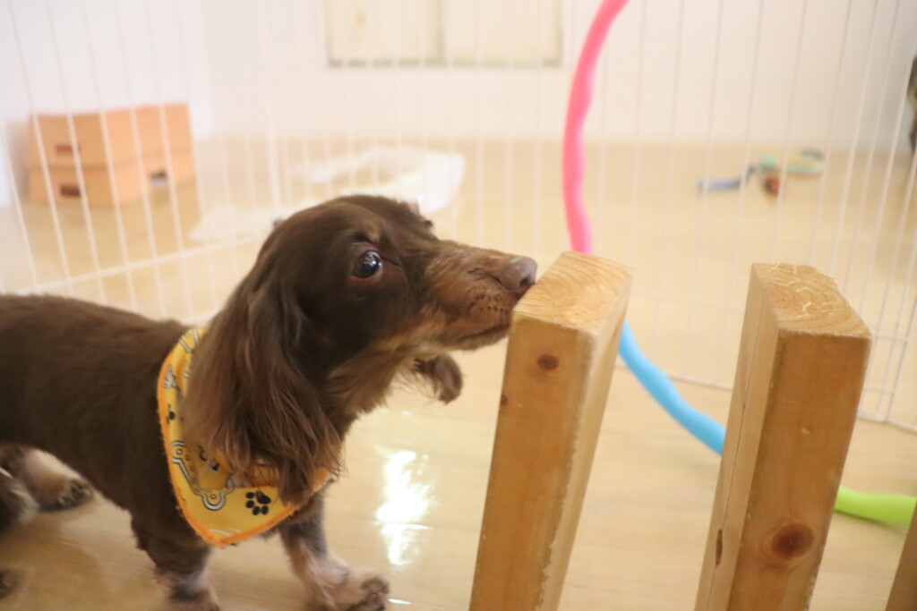 スタッフの「ハウス」の声掛けをしっかりと聞き、遠隔でもスムーズにクレートの中へ入ることが出来ています🎵