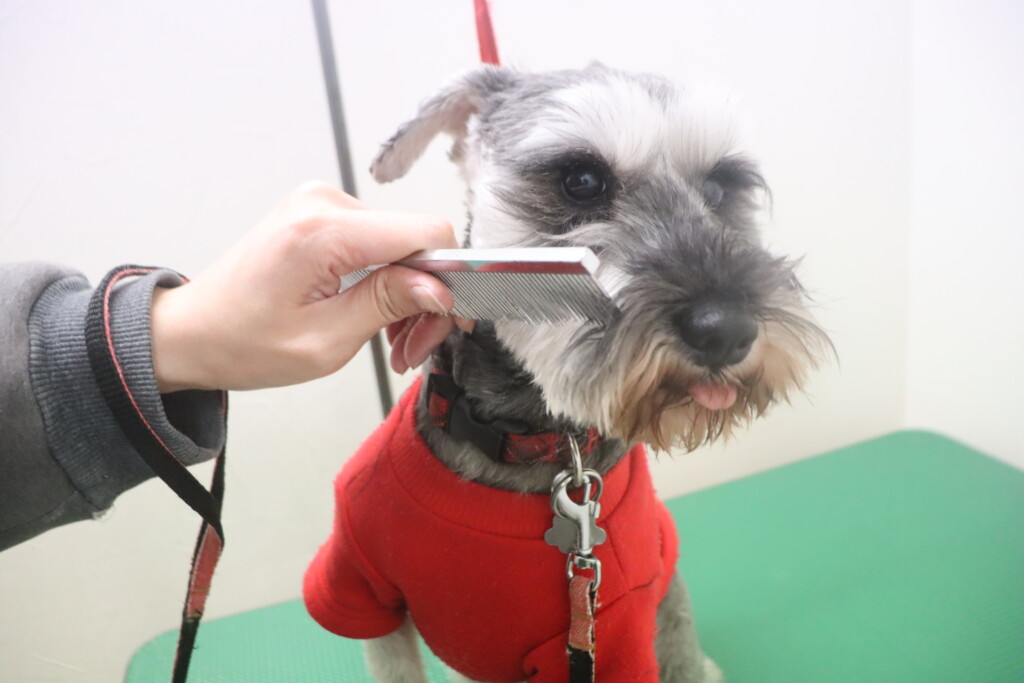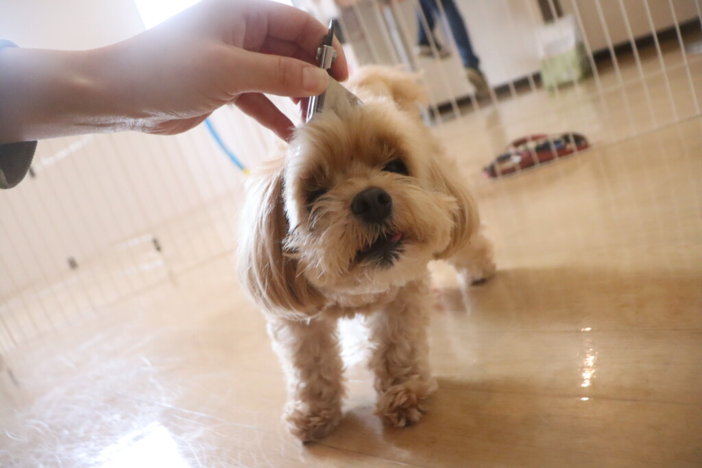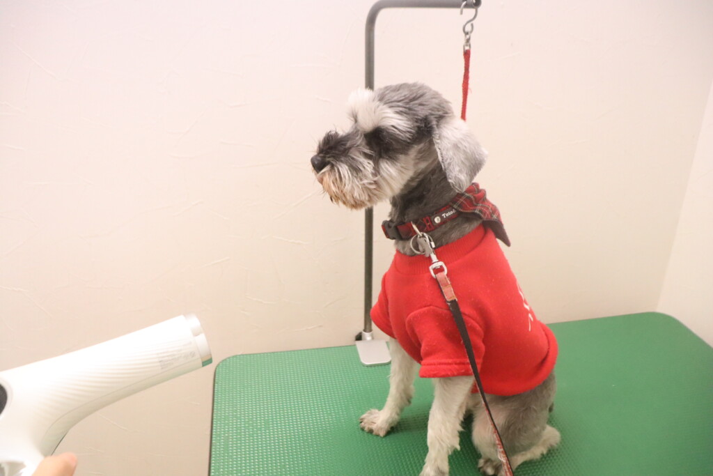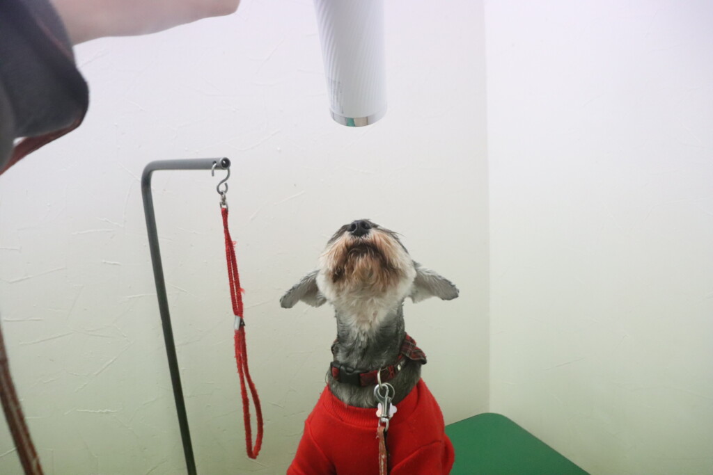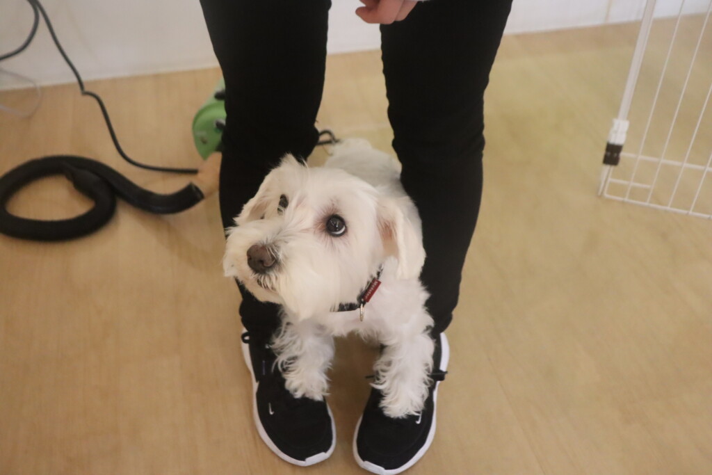 トリミング台の上でドライヤー・ブラッシング慣れもしています!
