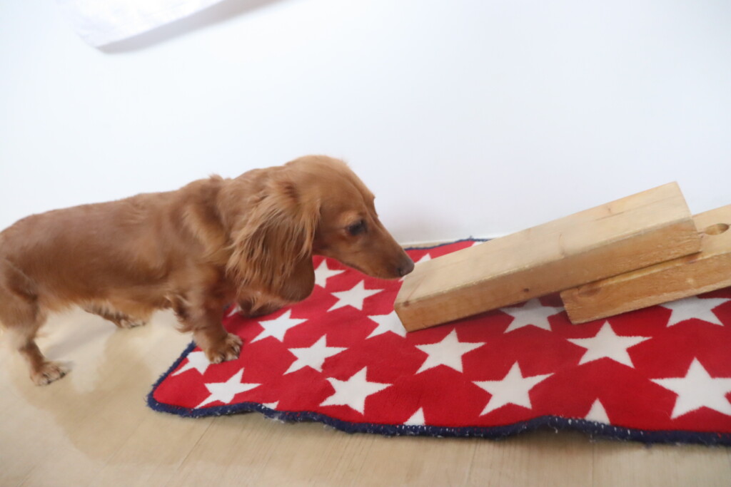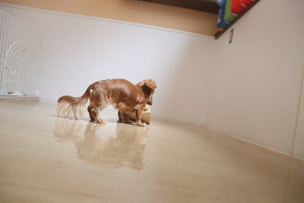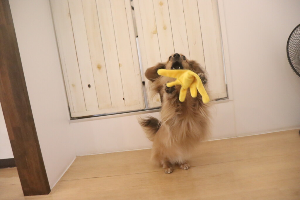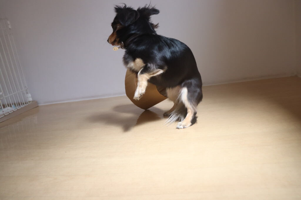 しかし、まだ時々前足で倒そうとしてしまうことが…😅