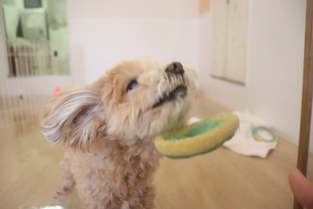 こころちゃんは新しいスタッフと”ディスクキャッチ”の練習をしたね!