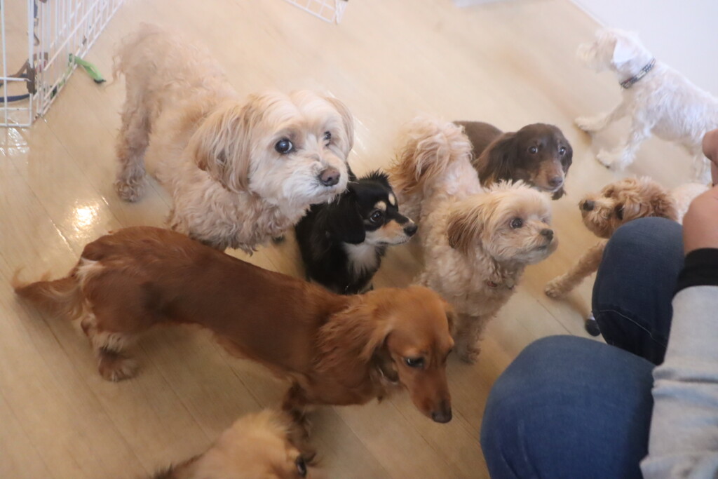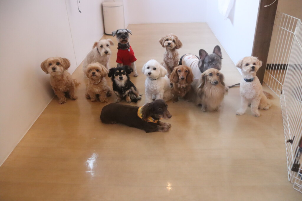 今日の保育園生は、ミニチュアシュナウザーのクオンくん・ソランちゃん・レイアちゃん、ミニチュアダックスフンドのミーシャちゃん・みるもちゃん、マルチーズ×トイプードルのゆずちゃん・サンディちゃん・うるくん・アリアちゃん・アンディくん、カニンヘンダックスフンドのラテちゃん、チワワ×ミニチュアダックスフンドのこころちゃん、フレンチブルドッグのハイちゃんです!
