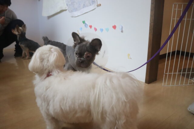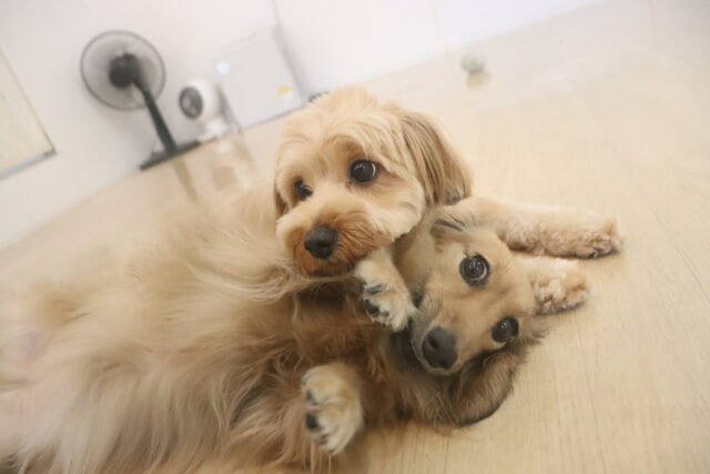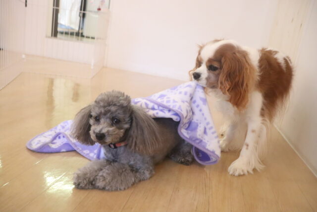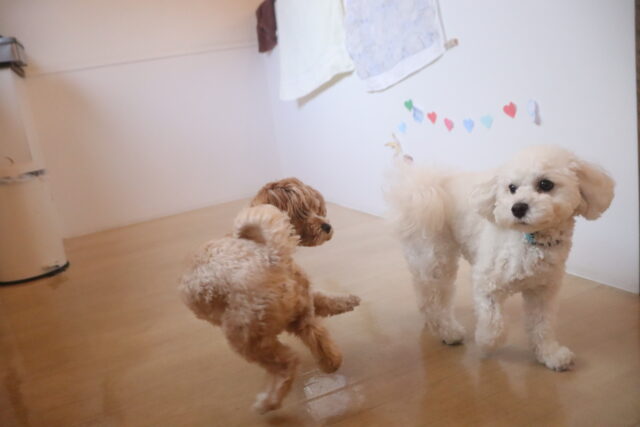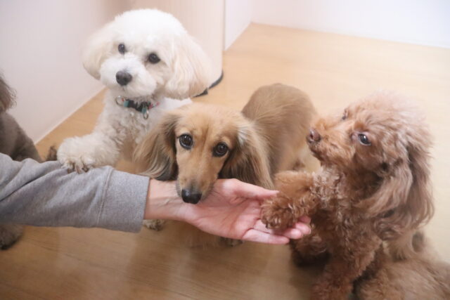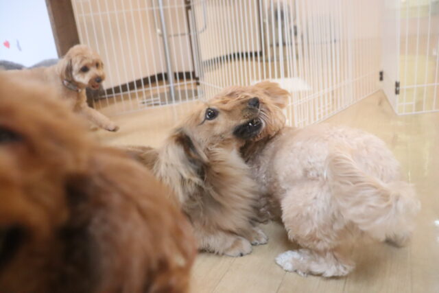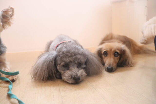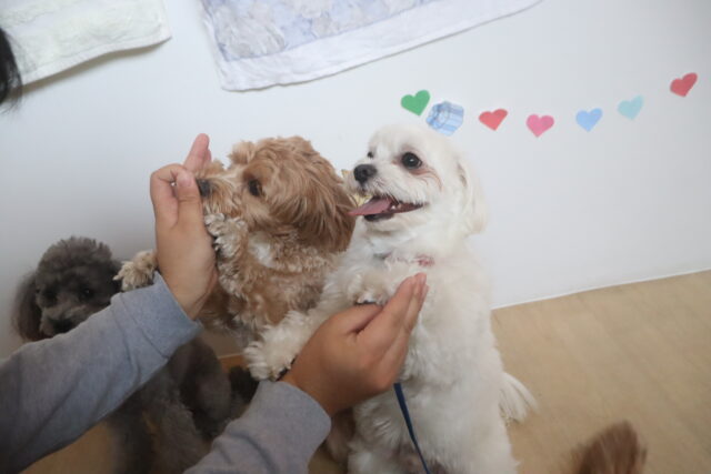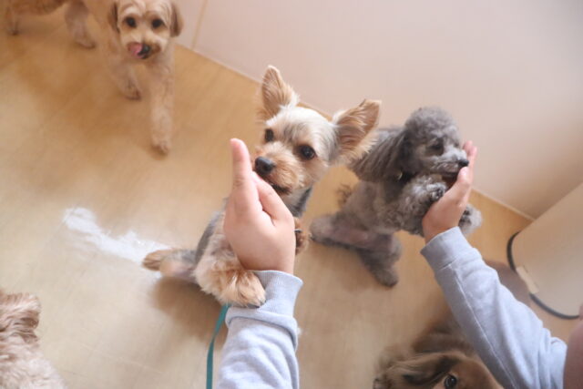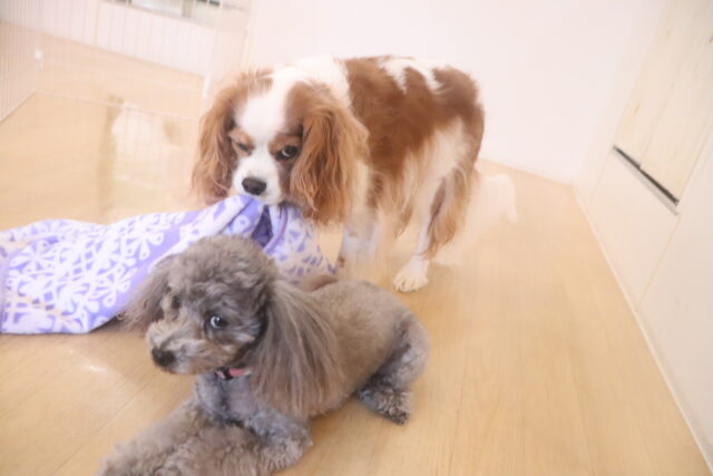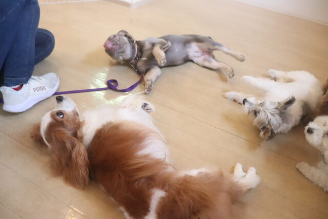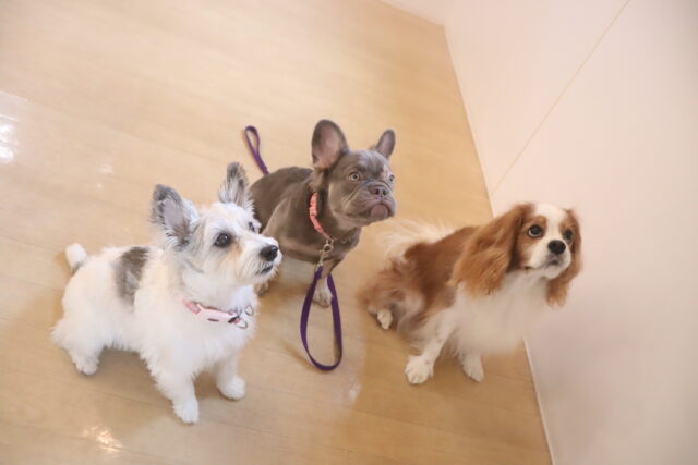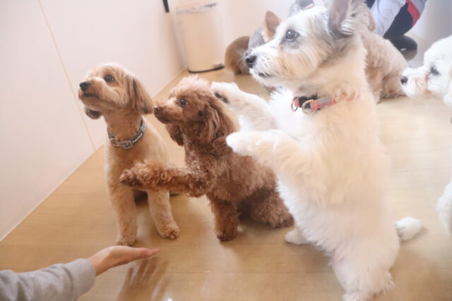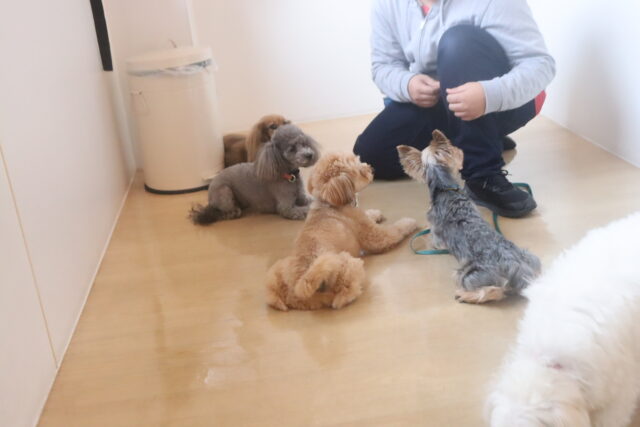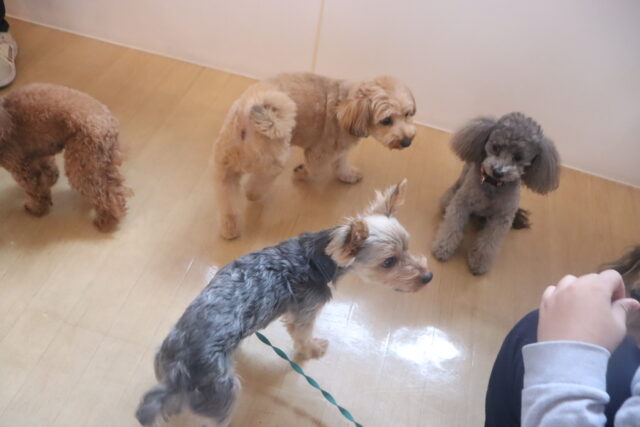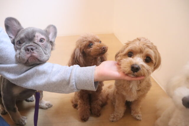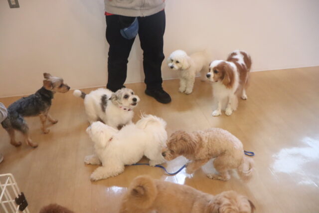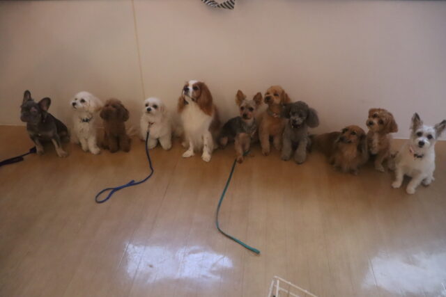 今日の保育園生は、ジャックラッセルテリアのソフィちゃん、トイプードルのアンジュちゃん・くうちゃん、キャバリアキングチャールズスパニエルの茶々丸くん、カニンヘンダックスフンドのラテちゃん、マルチーズ×トイプードルのアリアちゃん・陽向くん、ポメラニアン×トイプードルのエマちゃん、ヨークシャーテリアのルイくん、マルチーズのことぶきくん、フレンチブルドッグのハイちゃんです!