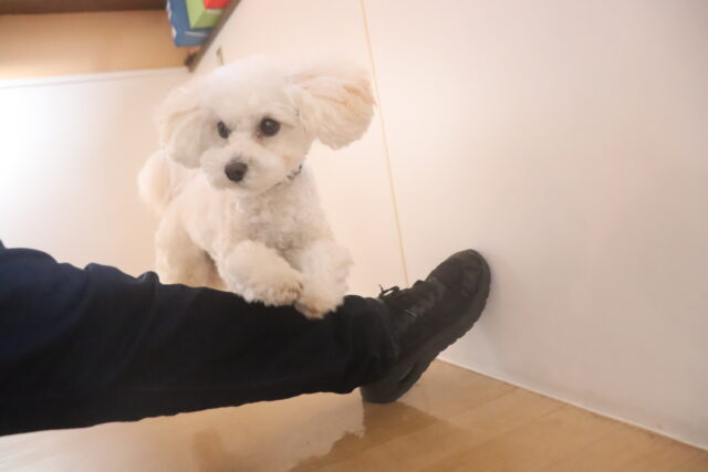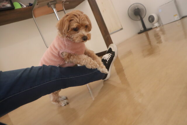 だいぶ慣れてきたようで、靴を履いていても普段と変わらず動くことが出来ていますよ🎵