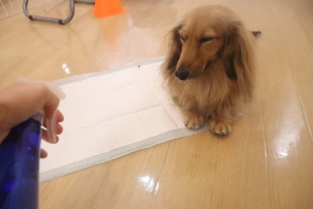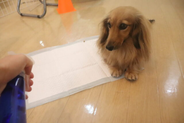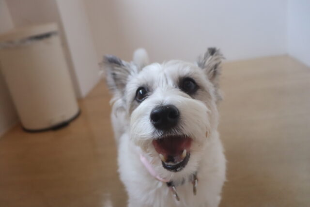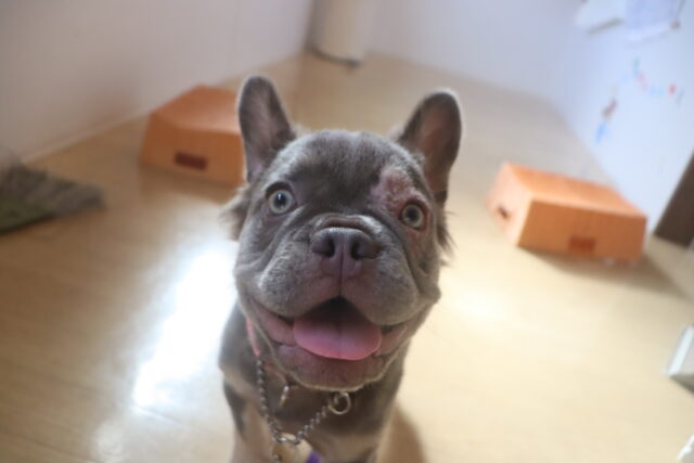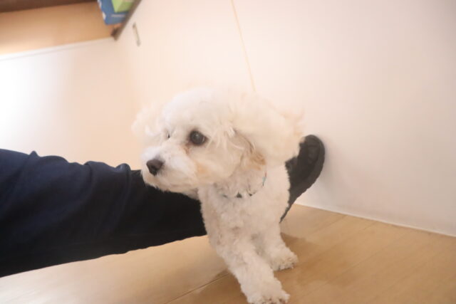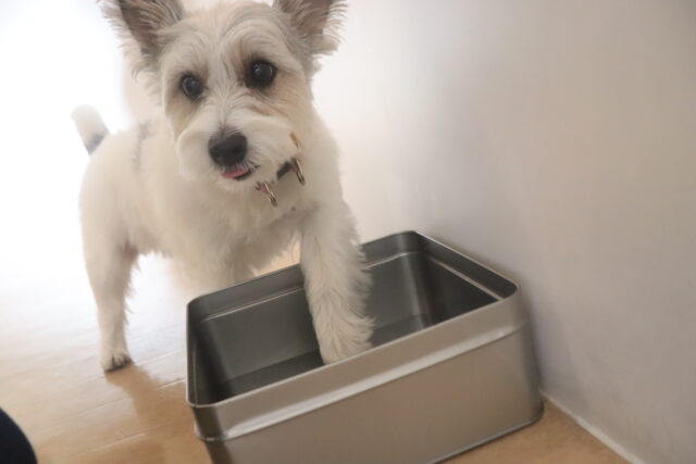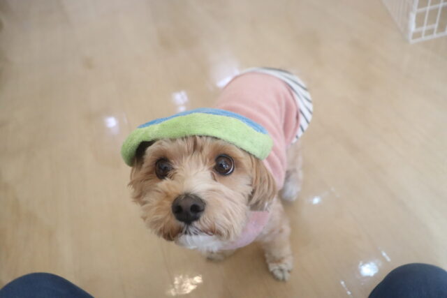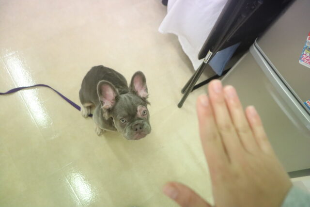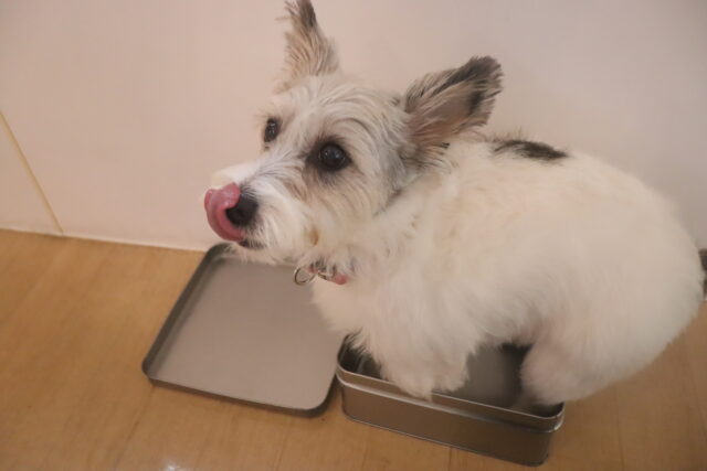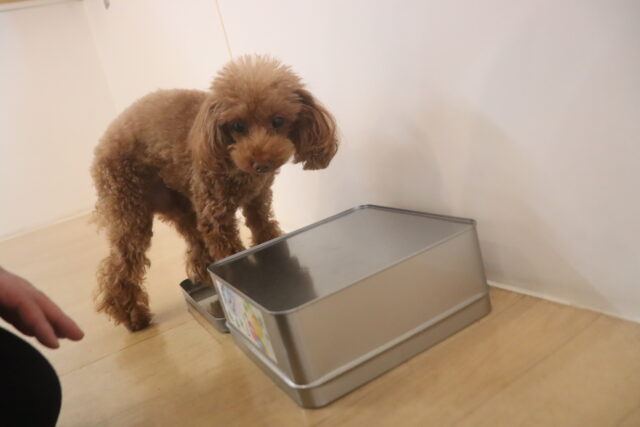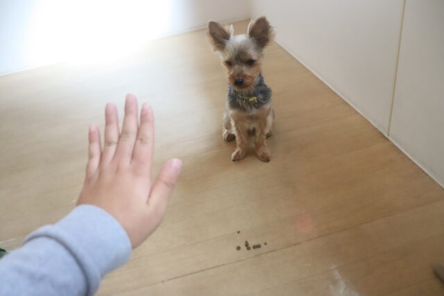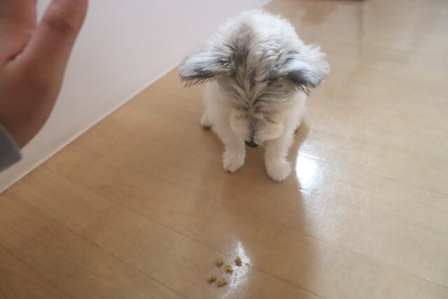 フードから目が離せないソフィちゃんでしたが、”よし”の合図が出るまでしっかりと待つことが出来ましたよ🎵