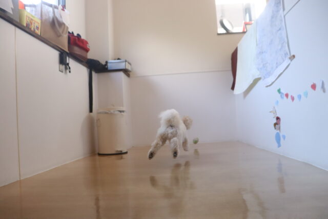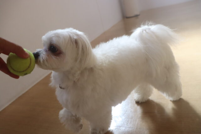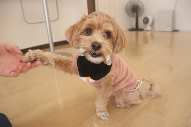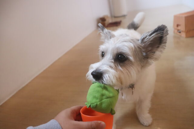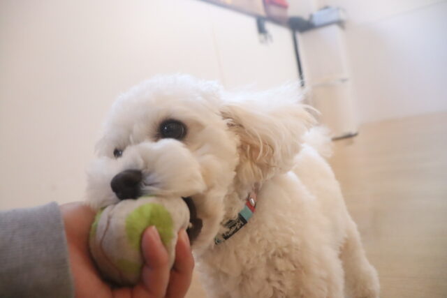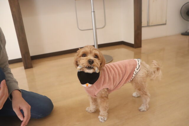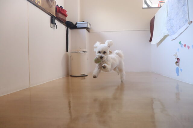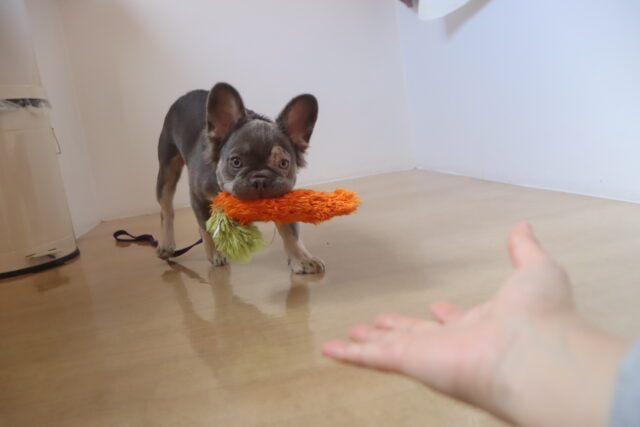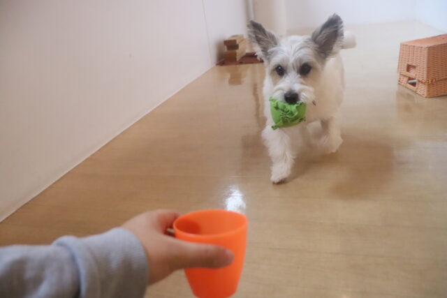 今日も猛ダッシュでオモチャを咥えに行き、スタッフの手元まで持って来てくれています💪