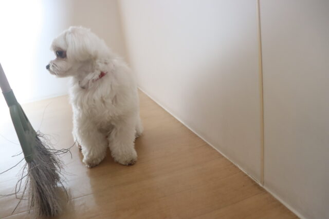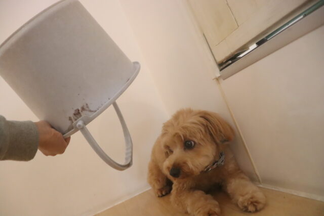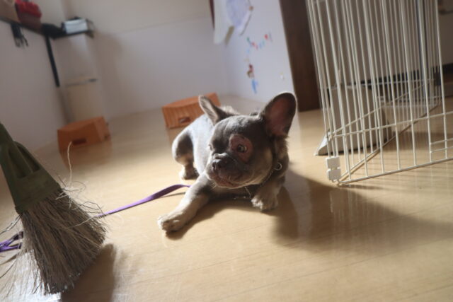 お尻周りを拭くと、不服そうな表情のルイくん😂
