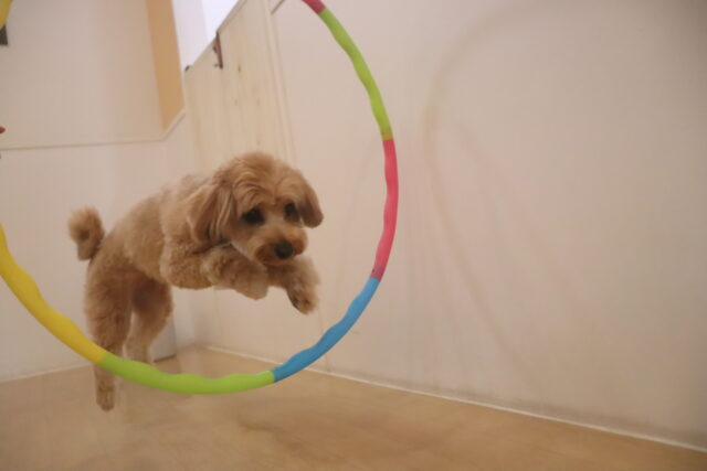 アンジュちゃんはサークルとイスくぐりの練習もしました!