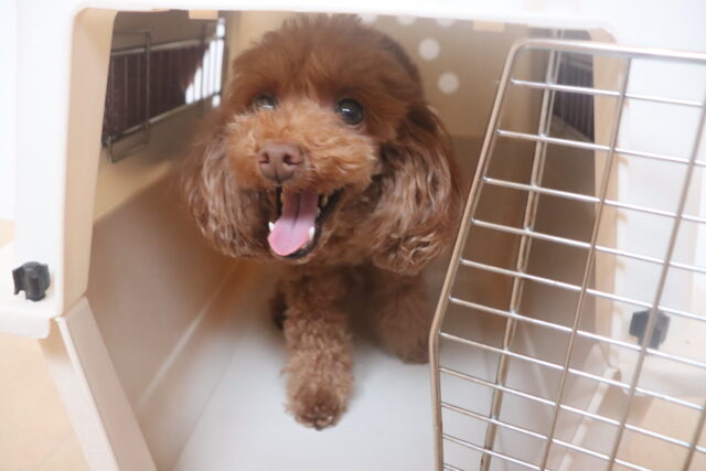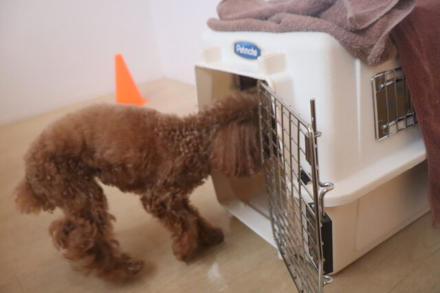 ”ハウス”の声掛けでスムーズにクレートの中へ👏