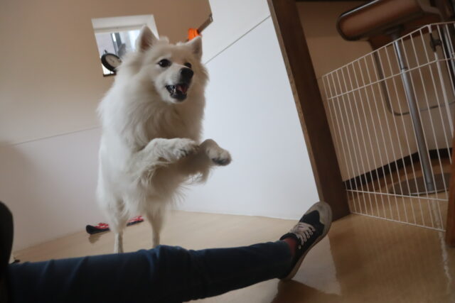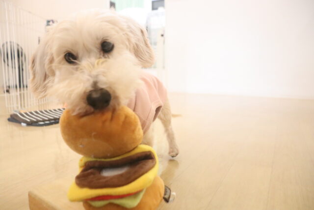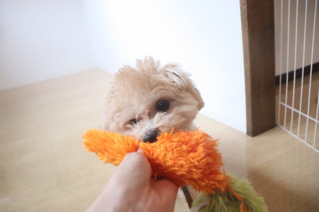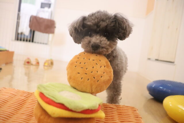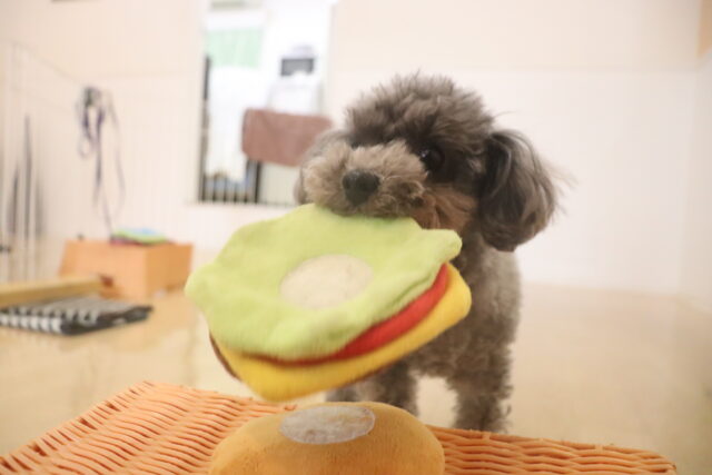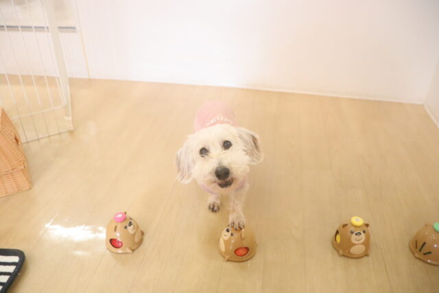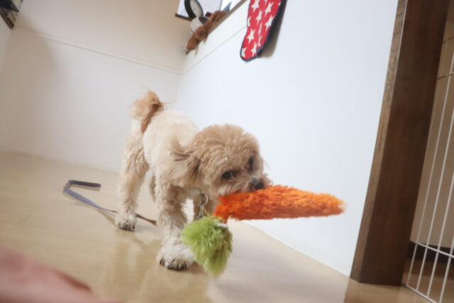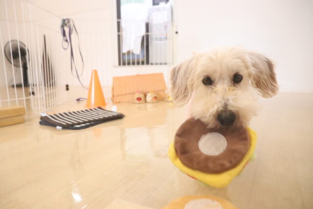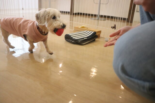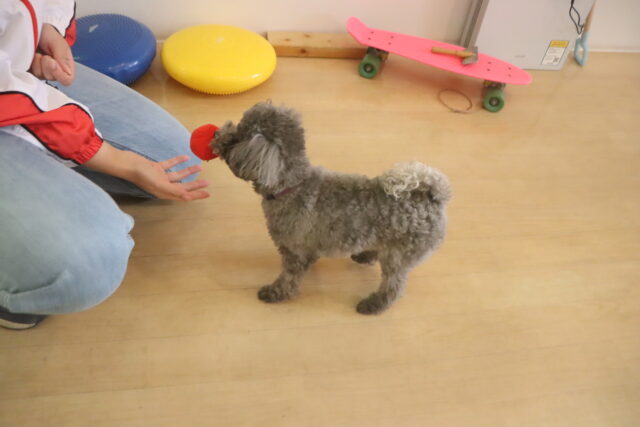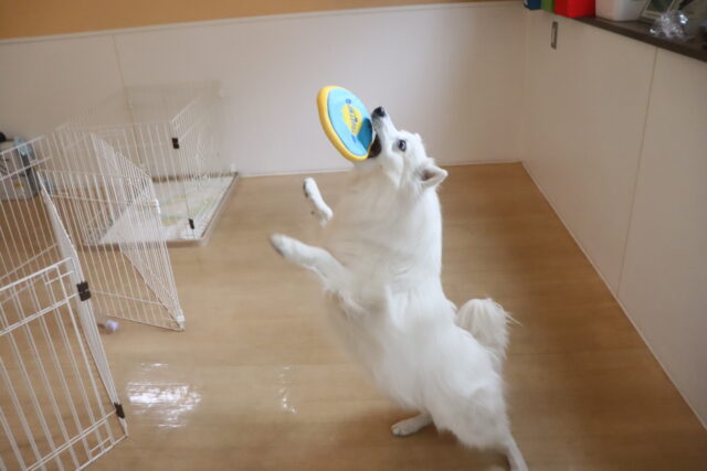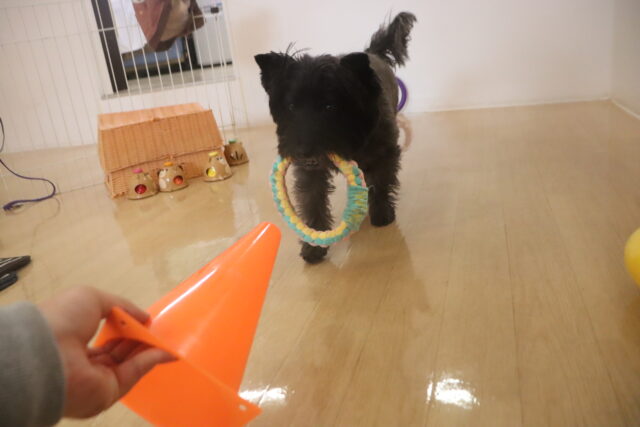 輪投げ練習では、おもちゃをしっかりと咥えて持ってくることが出来ましたよ👏