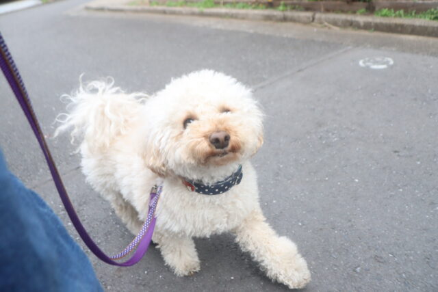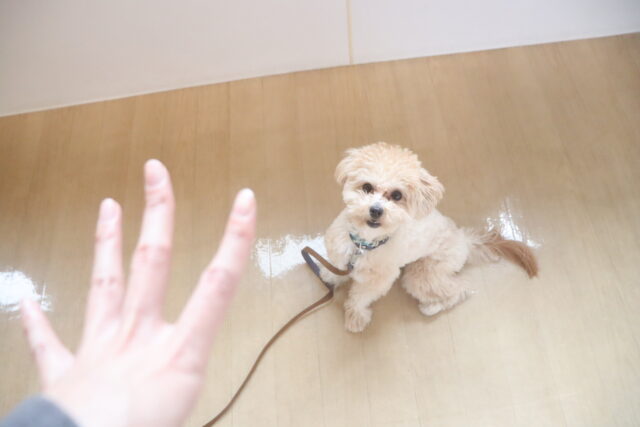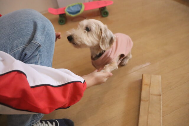 人慣れ練習では、初めての人に興味津々のモモちゃん👀