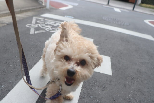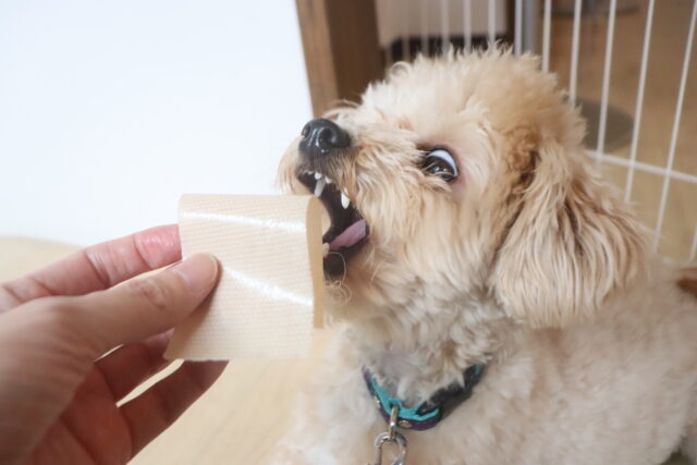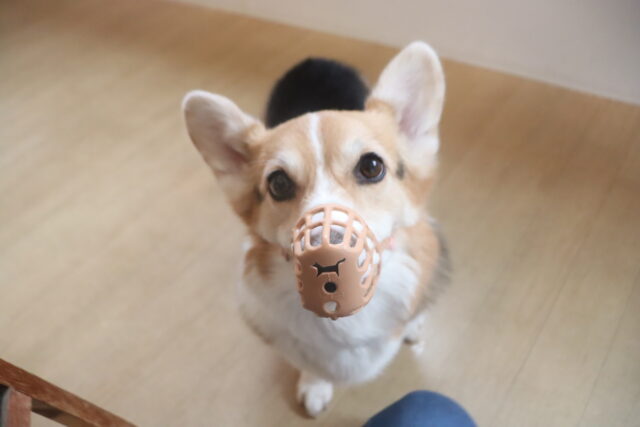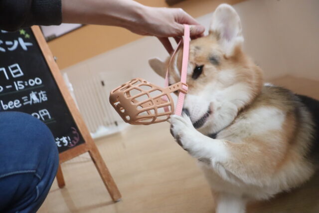 サクラちゃんは口輪の装着練習を行いました!「何だこれ!」と抵抗するサクラちゃんでしたが、