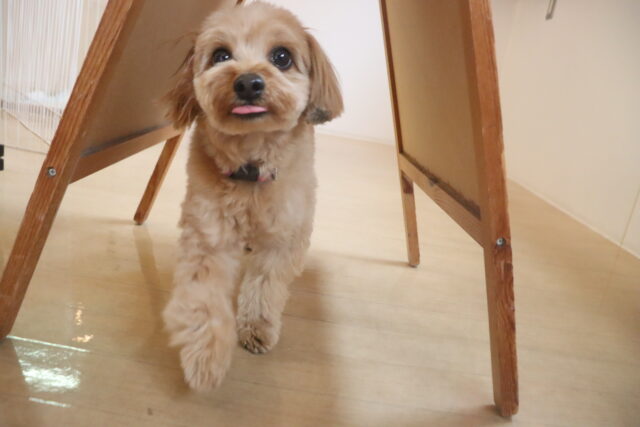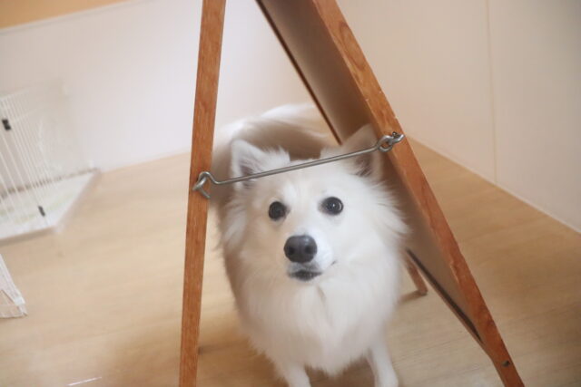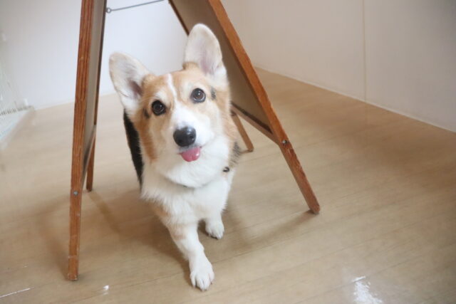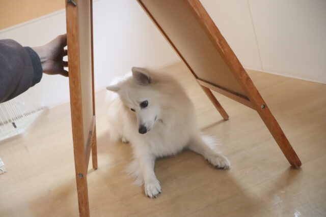 パブロンくん、サクラちゃん、エマちゃんは看板を使って物慣れを行いました!全頭スイスイとくぐり抜けてくれましたが、