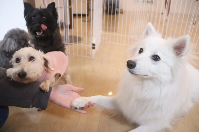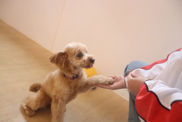 小梅ちゃんは研修生とトリック練習!お手から始まり、