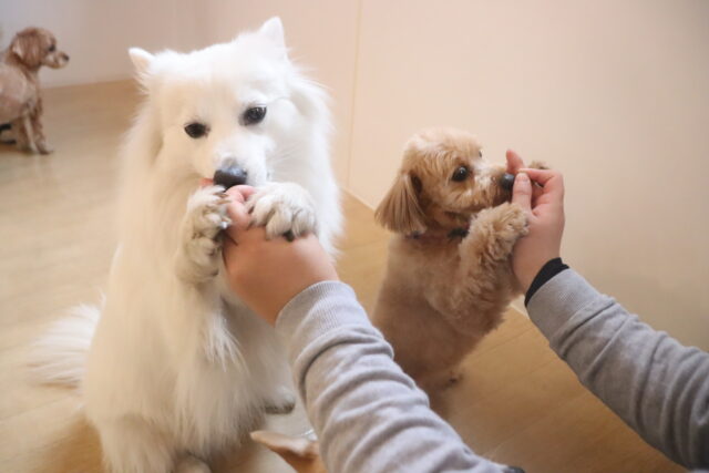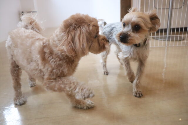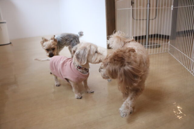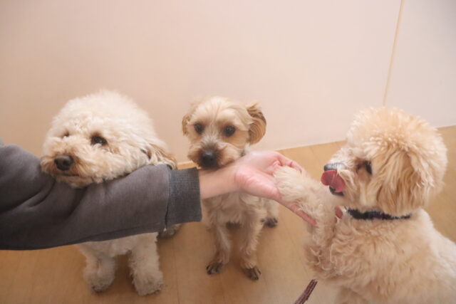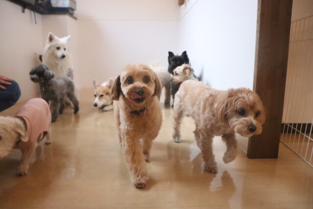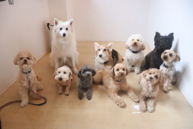 今日の保育園生は、マルチーズ×トイプードルのアリアちゃん、晴くん、アンディくん、トイプードルのモモちゃん、ポメラニアン×トイプードルのエマちゃん、ウェルシュコーギーペンブロークのサクラちゃん、ケアーンテリアのノンちゃん、ワイヤーへアードミニチュアダックスフンドの小梅ちゃん、ヨークシャーテリアのノアくん、日本スピッツのパブロンくんです!