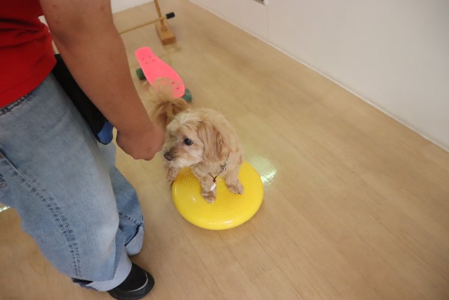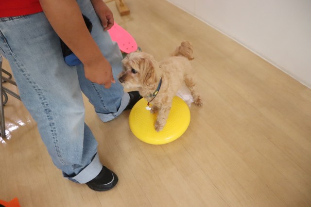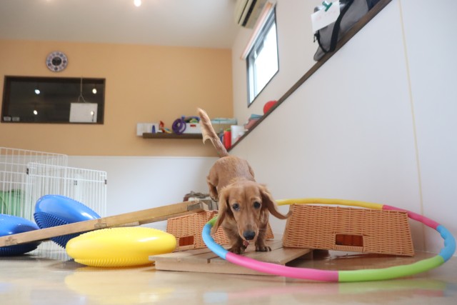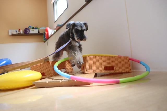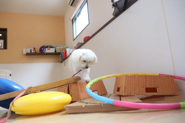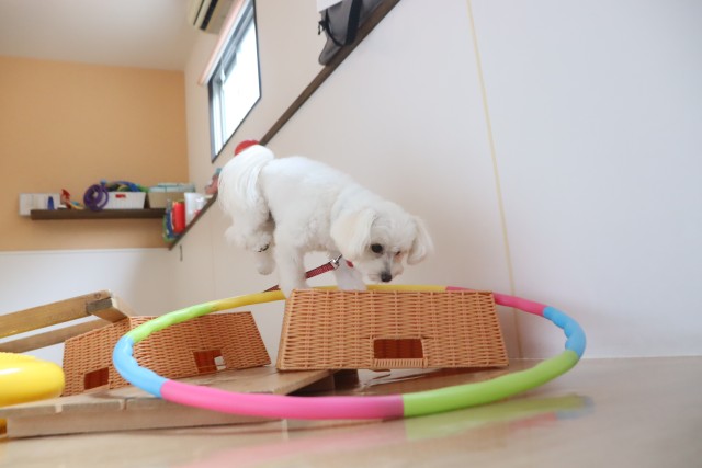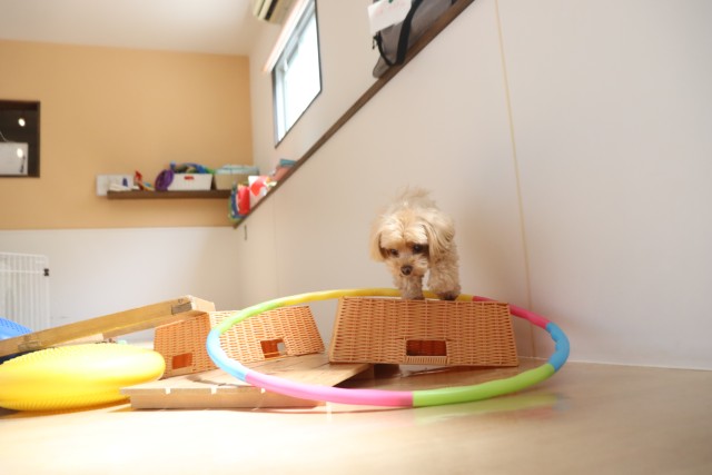 様々な道具の上を慎重に渡ったり、ピョーンと跳び越えてスタッフの元まで来ることが出来ています♪