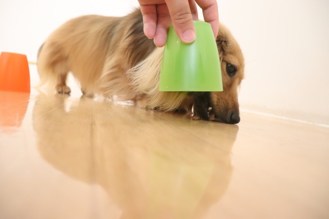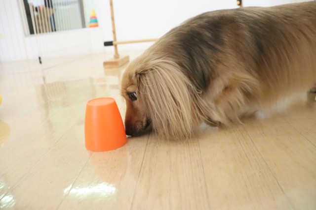 迷いながらもフードが入っている方のコップを嗅ぎ分けることが出来ると…