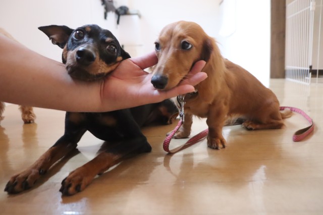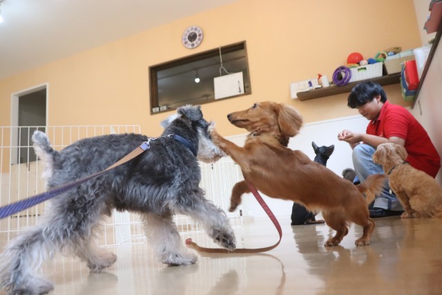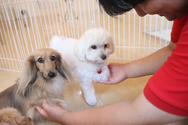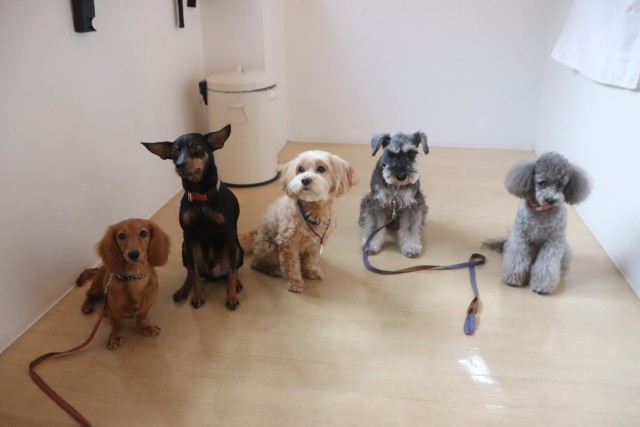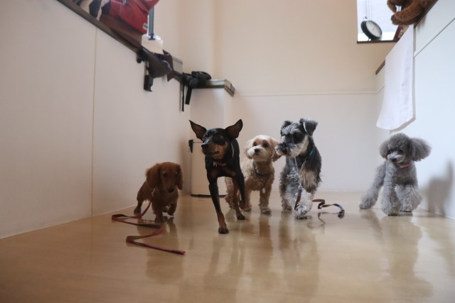 今日の保育園生はミニチュアダックスフンドのみるもちゃん、マルチーズ×トイプードルのゆずちゃん、サンディちゃん、うるくん、ミニチュアシュナウザーのクオンくん、ミニチュアピンシャーのルアくん、トイプードルのアンジュちゃん、カニンヘンダックスフンドのラテちゃんです!