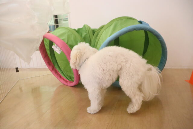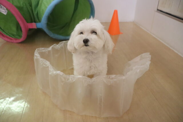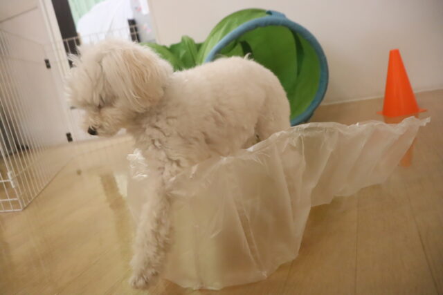 ゆずちゃんはビニールの袋を使って物慣れをしました!