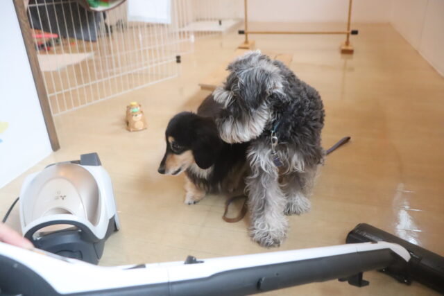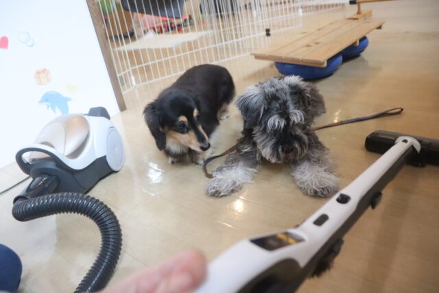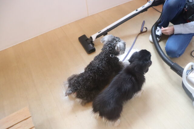 すいれんちゃんとクオンくんは一緒に掃除機慣れもしています!