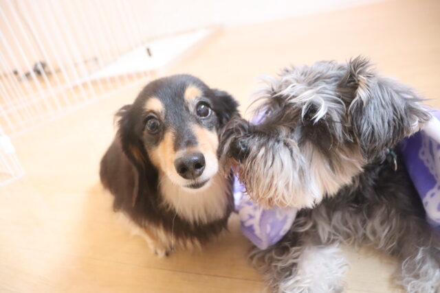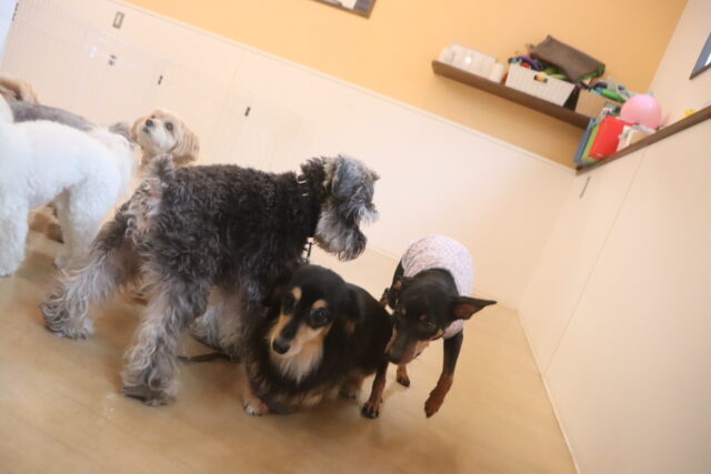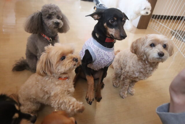 今日の保育園生は、ミニチュアダックスフンドのすいれんちゃん・ミーシャちゃん・みるもちゃん、ミニチュアシュナウザーのクオンくん、ミニチュアピンシャーのルアくん、マルチーズ×トイプードルのゆずちゃん・サンディちゃん・うるくん、チワワ×ミニチュアダックスフンドのこころちゃんです!