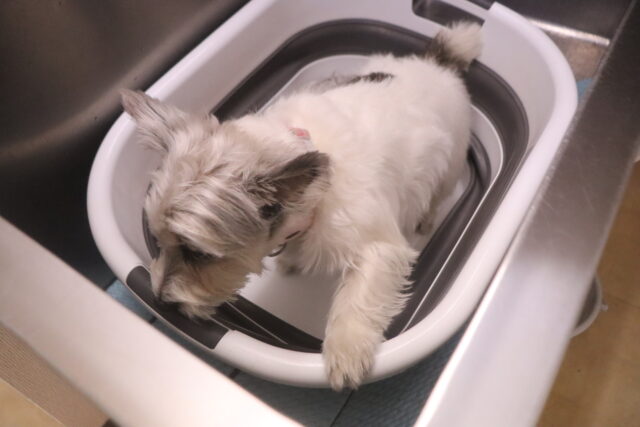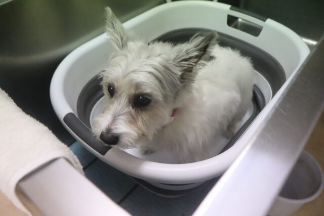 室内ではシャンプーの際に使っているバスタブの中に入ったソフィちゃん!