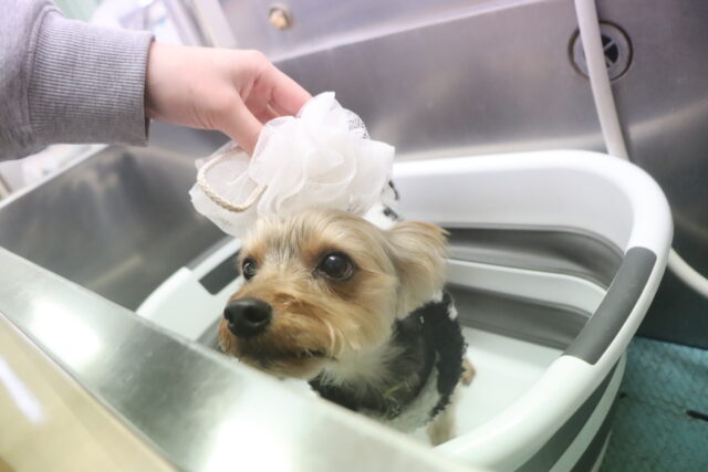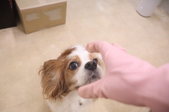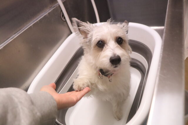 少し経つと落ち着いてきたようで、バスタブの中でオスワリやトリックをすることが出来ました!