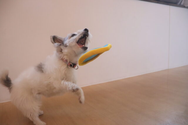 ジャンプ中もオモチャを放すことなく通過!!!素晴らしいです✨