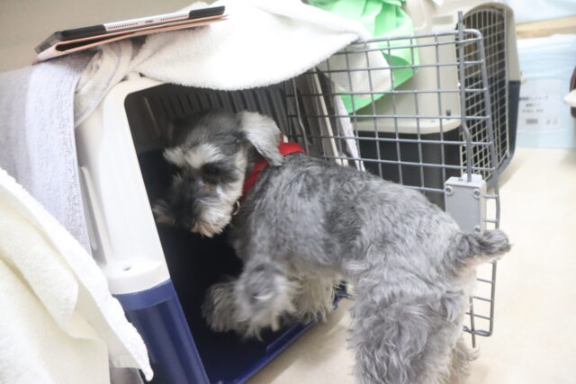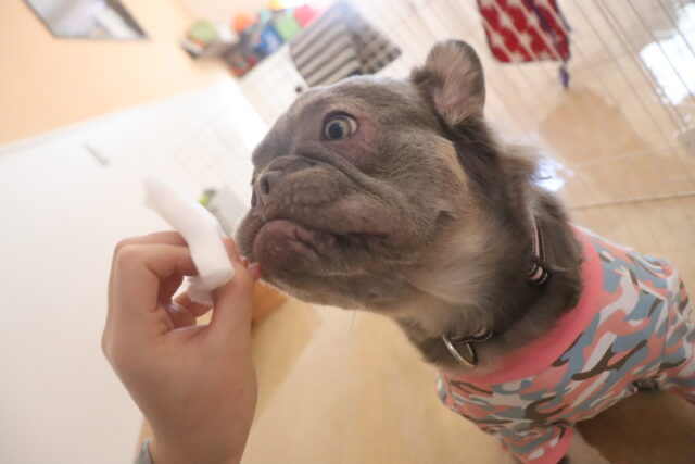 表情からすごく嫌そうな様子が伝わってきますが…(笑)逃走することなく最後まで取り組んでくれました!
