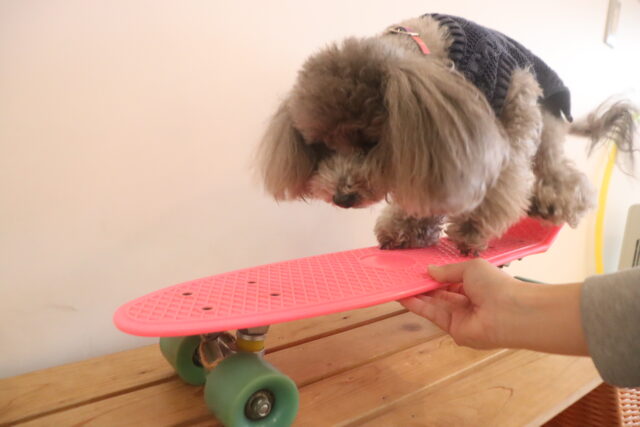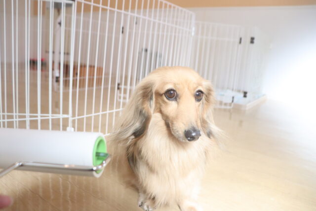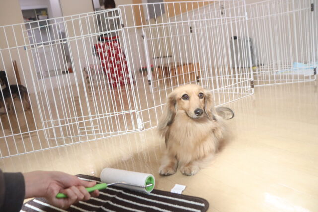 ラテちゃんは掃除用具のコロコロを使って物慣れをしました!