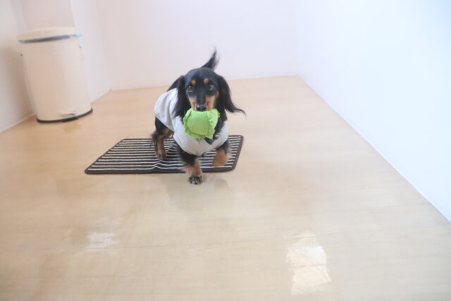 ”お片付け”と勘違いしちゃったのかな?次は咥えたままマットの上でフセが出来るように頑張ろう(`・ω・´)✊