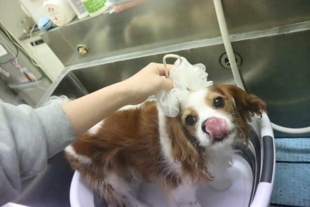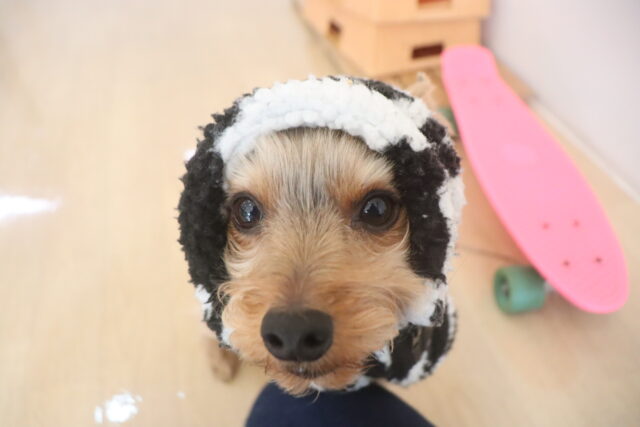 「シャンプーされちゃう…💦」と写真からも焦っている様子が伝わってきますね…😂