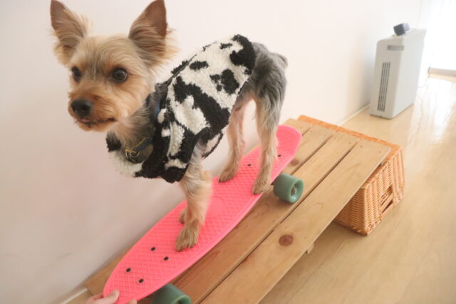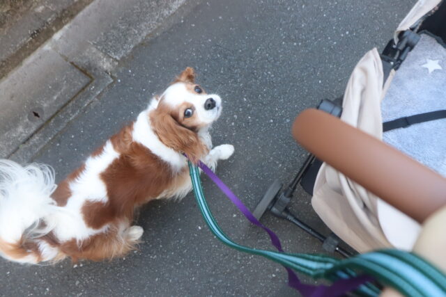 ハイちゃんと茶々丸くんはカートと並走して歩く練習!