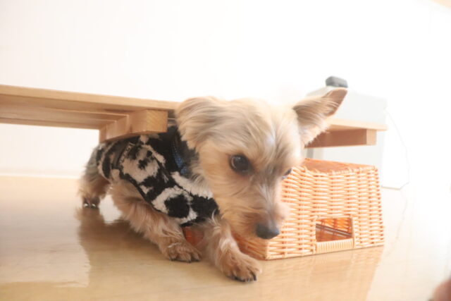 ルイくんは狭い隙間をくぐり抜ける練習をしました!