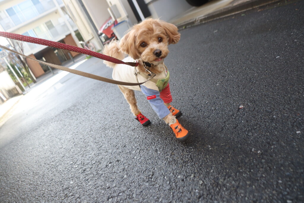 アリアちゃんは苦手な雨上がりの道路でお散歩練習もしたね!