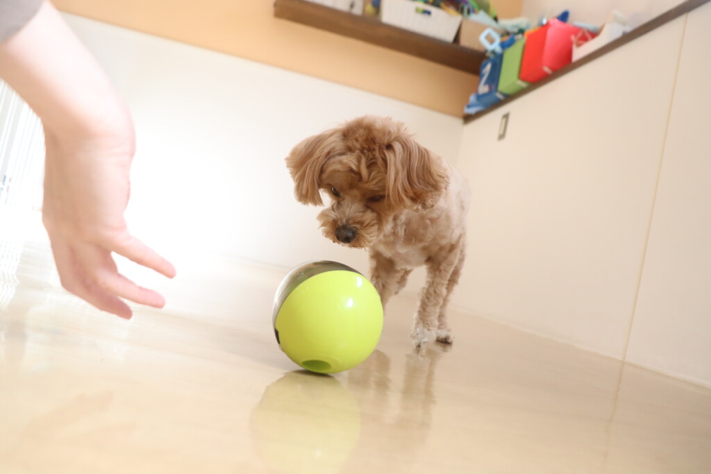 「こうやって転がすんだよ!」とスタッフがお手本を見せてあげると、