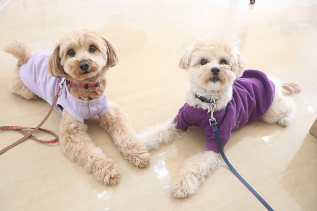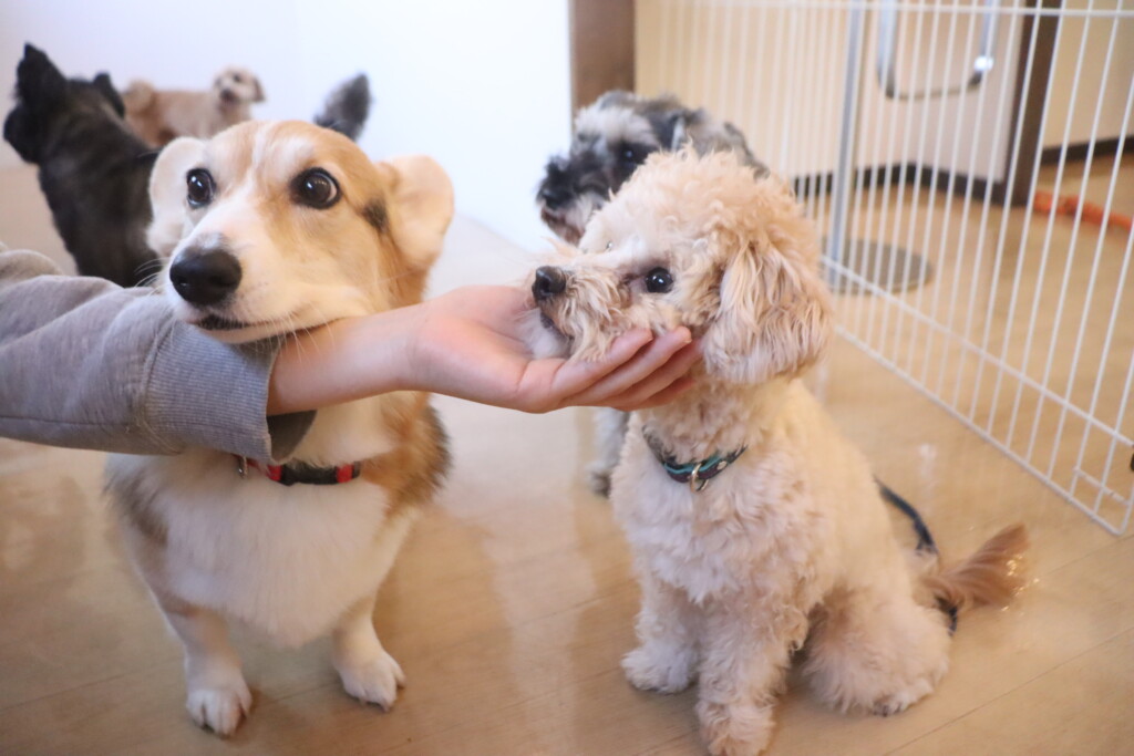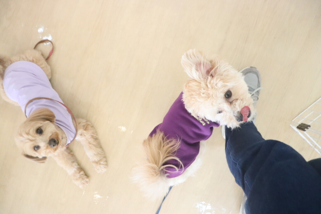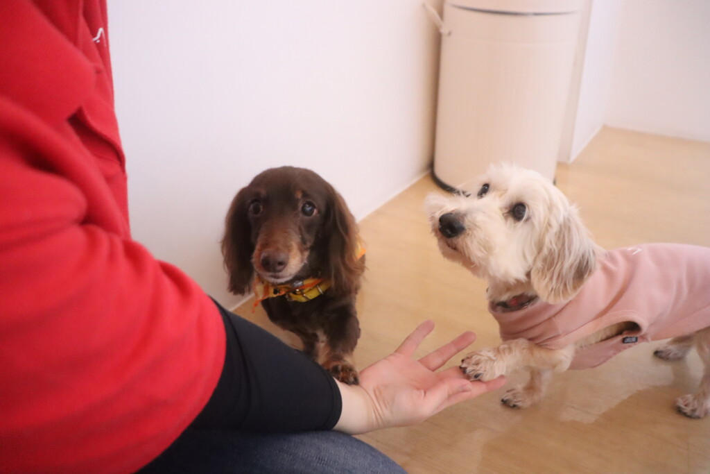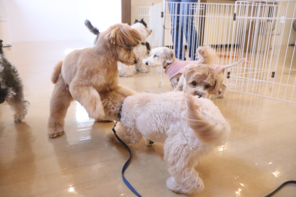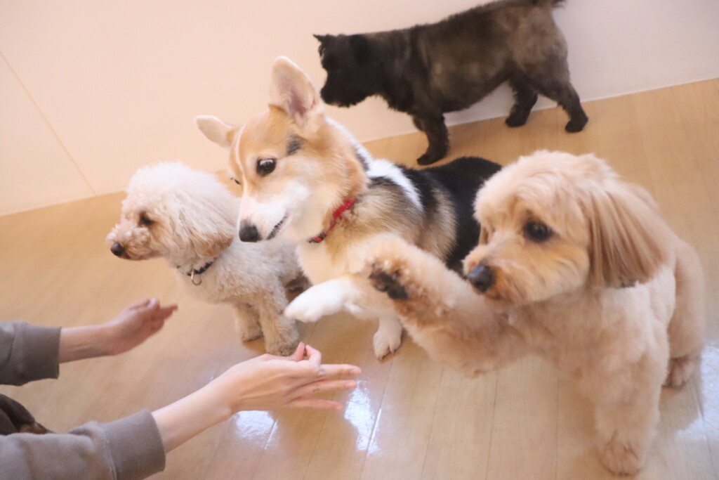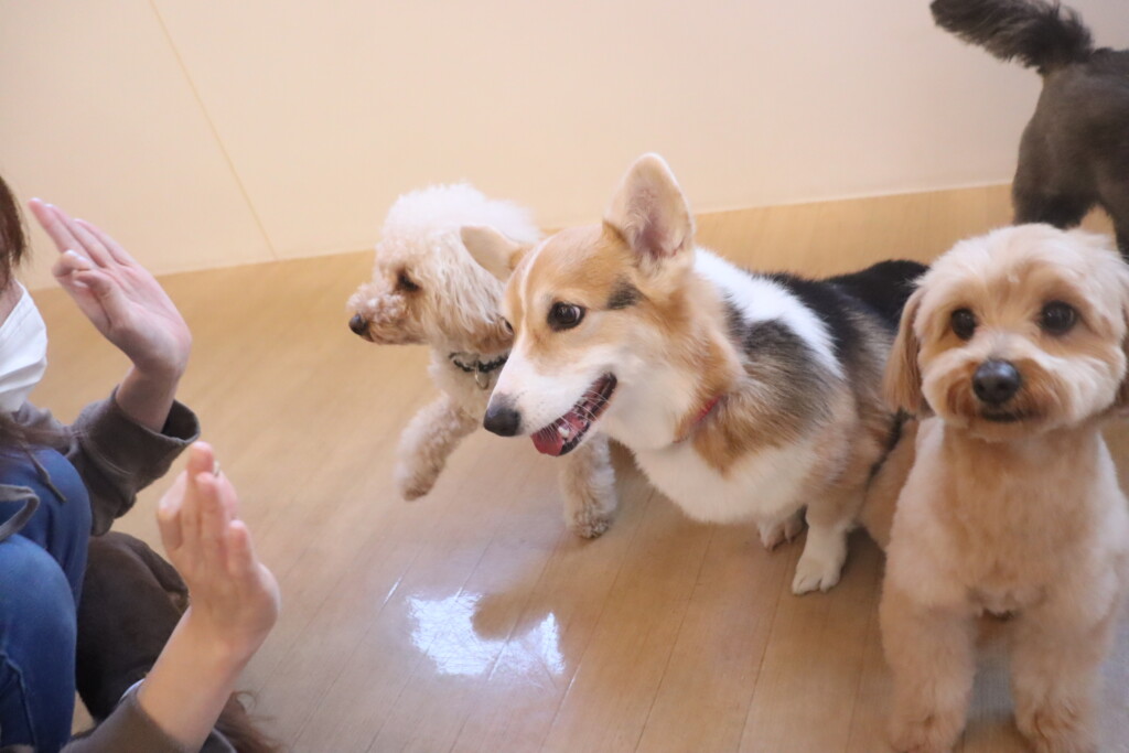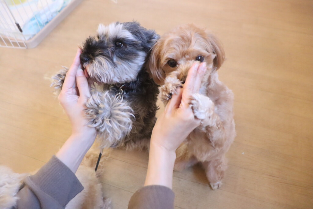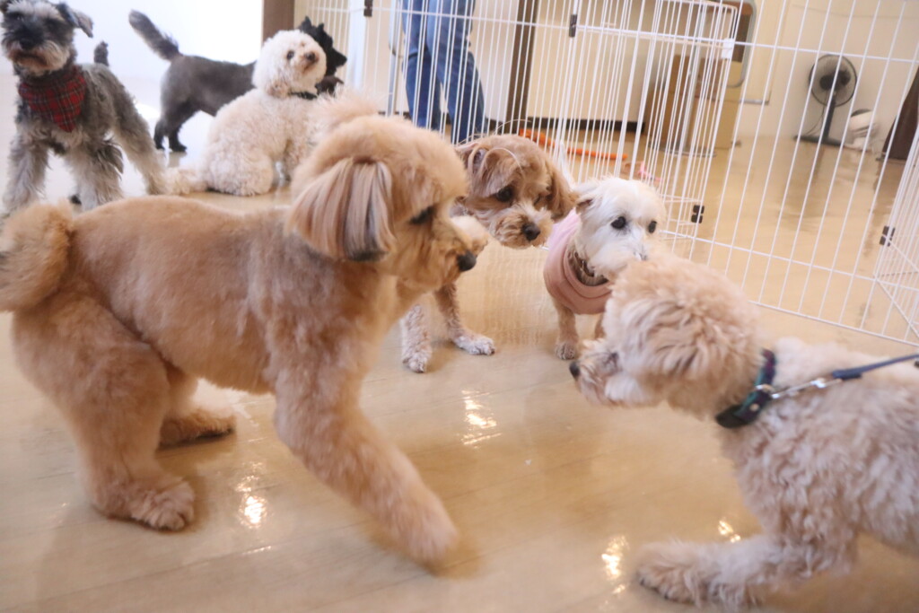 今日の保育園生は、マルチーズ×トイプードルのアンディくん・アリアちゃん・晴くん、ポメラニアン×トイプードルのエマちゃん、ミニチュアダックスフンドのミーシャちゃん、ウェルシュコーギーペンブロークのサクラちゃん、ワイヤーヘアードミニチュアダックスフンドの小梅ちゃん、ケアーンテリアのノンちゃん、ミニチュアシュナウザーのレイアちゃんです!