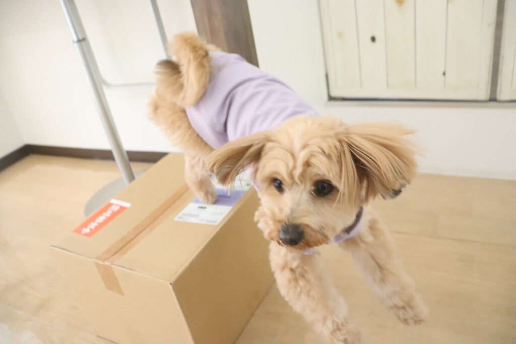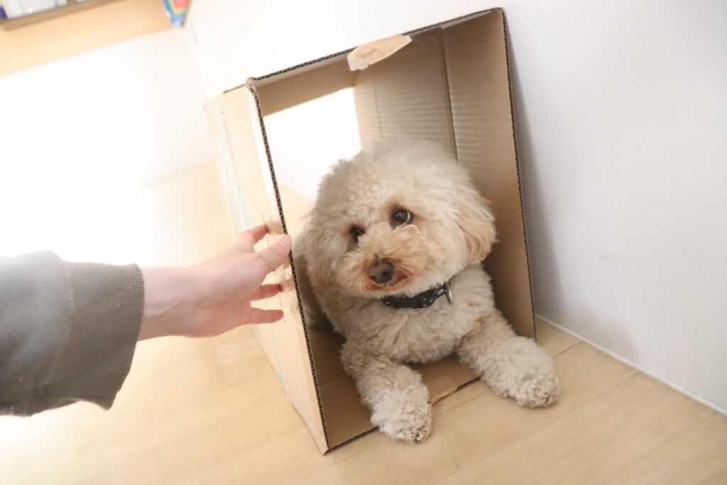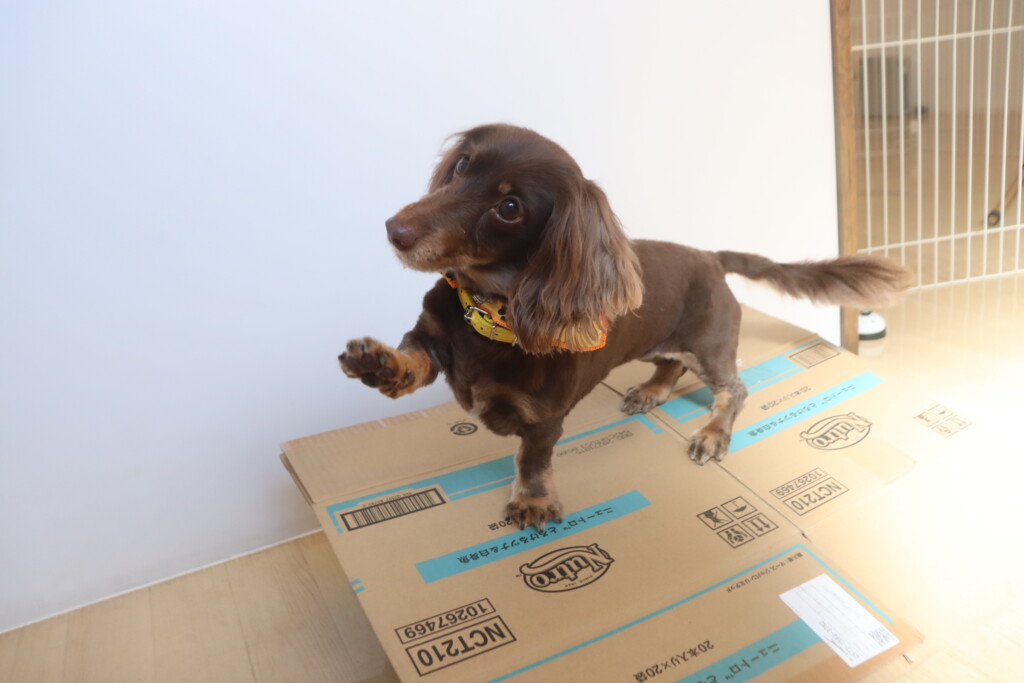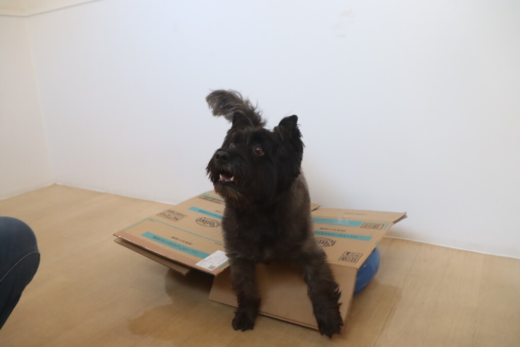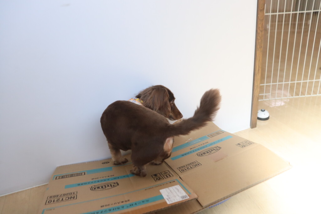 アリアちゃん、晴くん、ミーシャちゃん、小梅ちゃん、ノンちゃんもそれぞれ段ボールを使ったトレーニングを行っています!