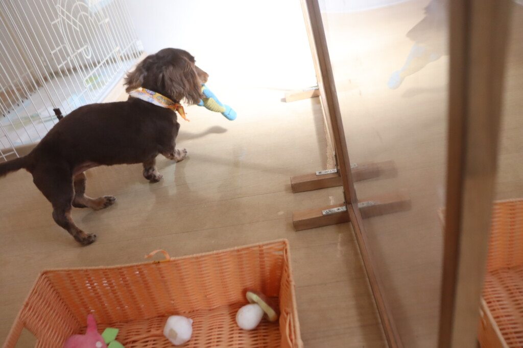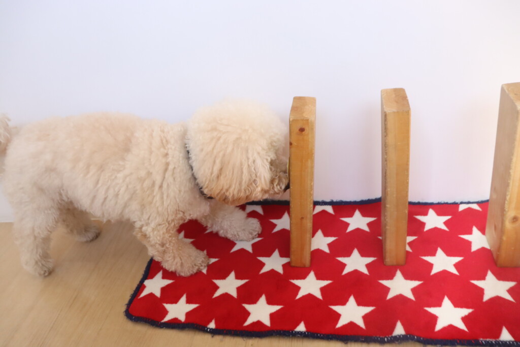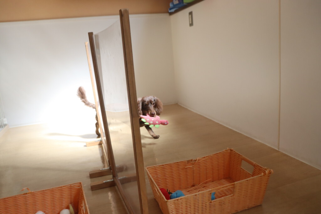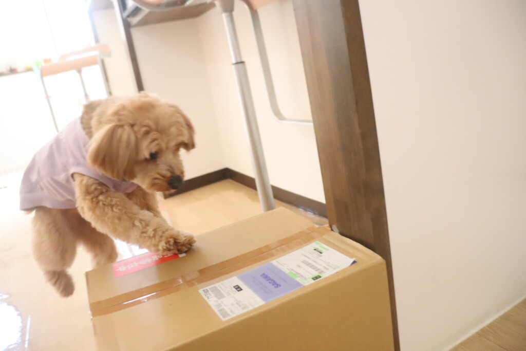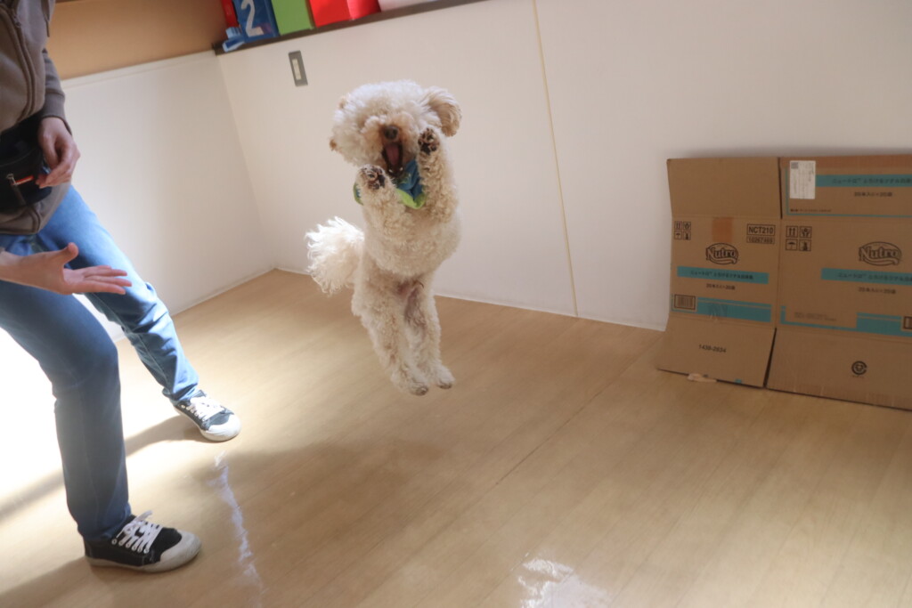 アリアちゃん、晴くん、ミーシャちゃん、小梅ちゃん、ノンちゃんもそれぞれ段ボールを使ったトレーニングを行っています!