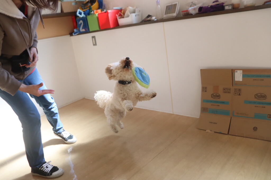 晴くんはディスクキャッチの練習を頑張っていますよ!