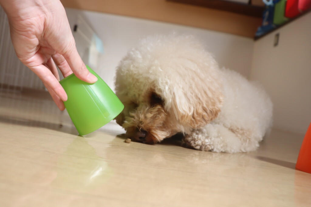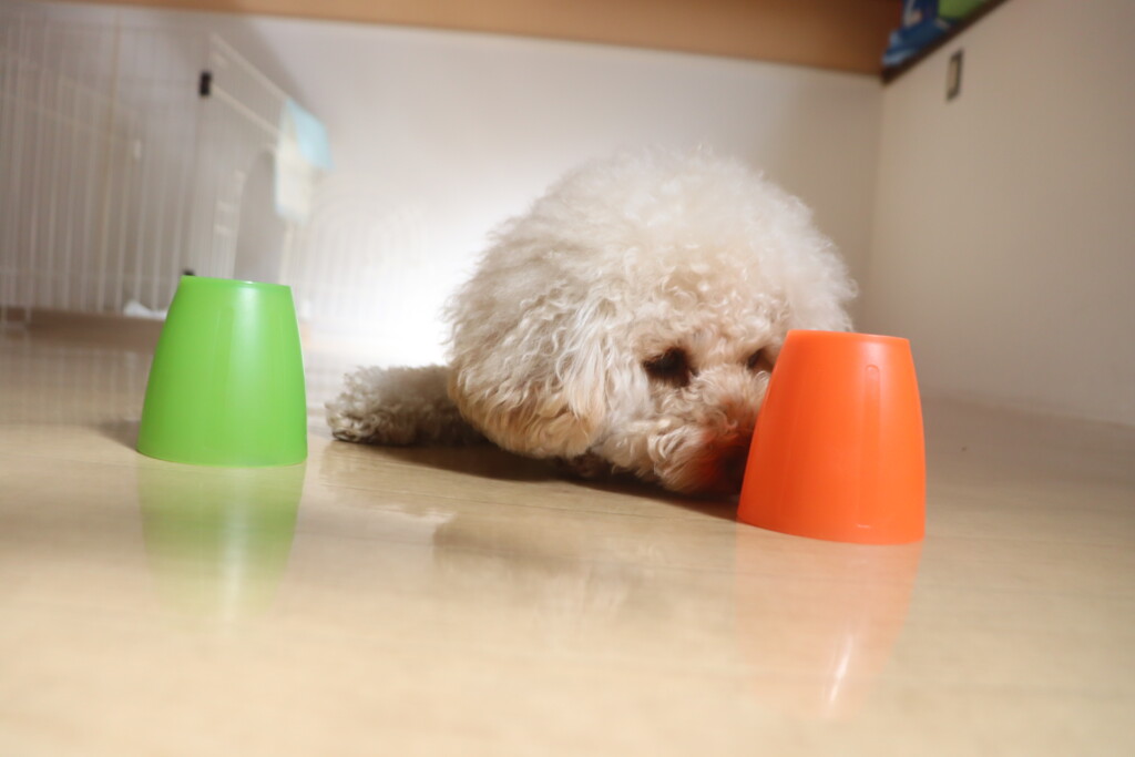 宝探しはしっかりと左右のカップを嗅ぎ分けて、