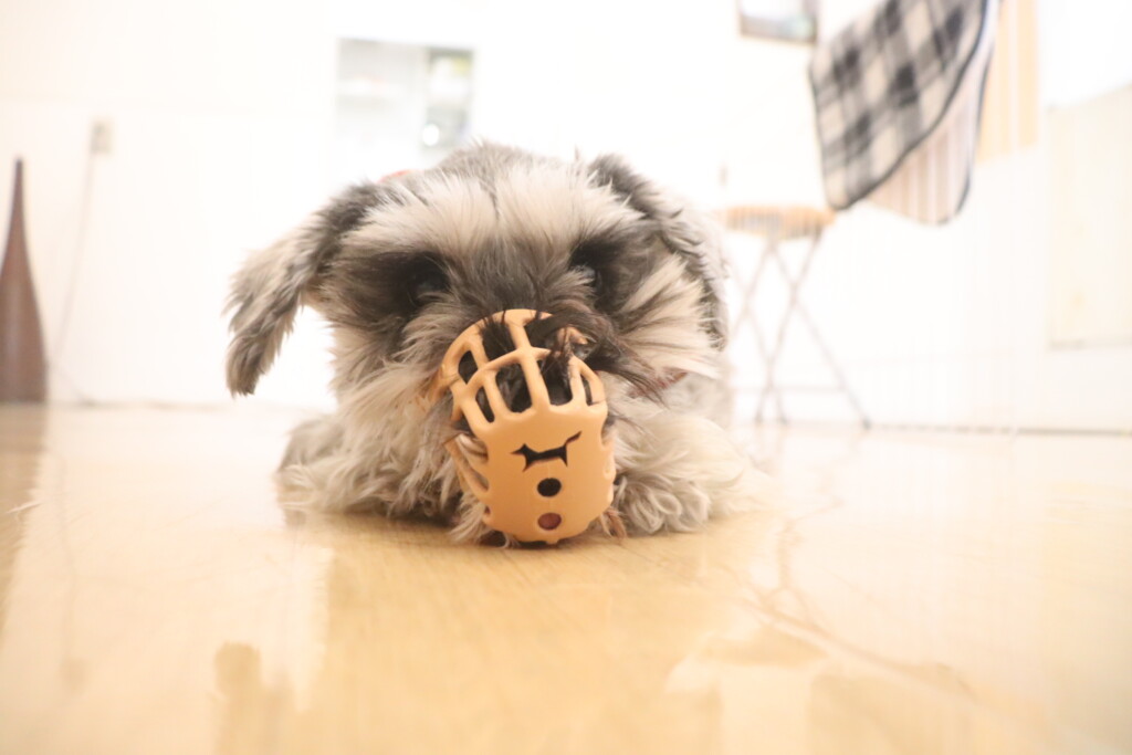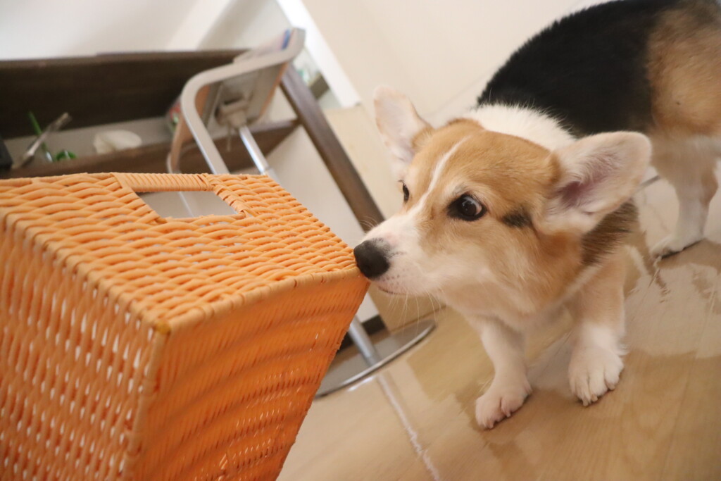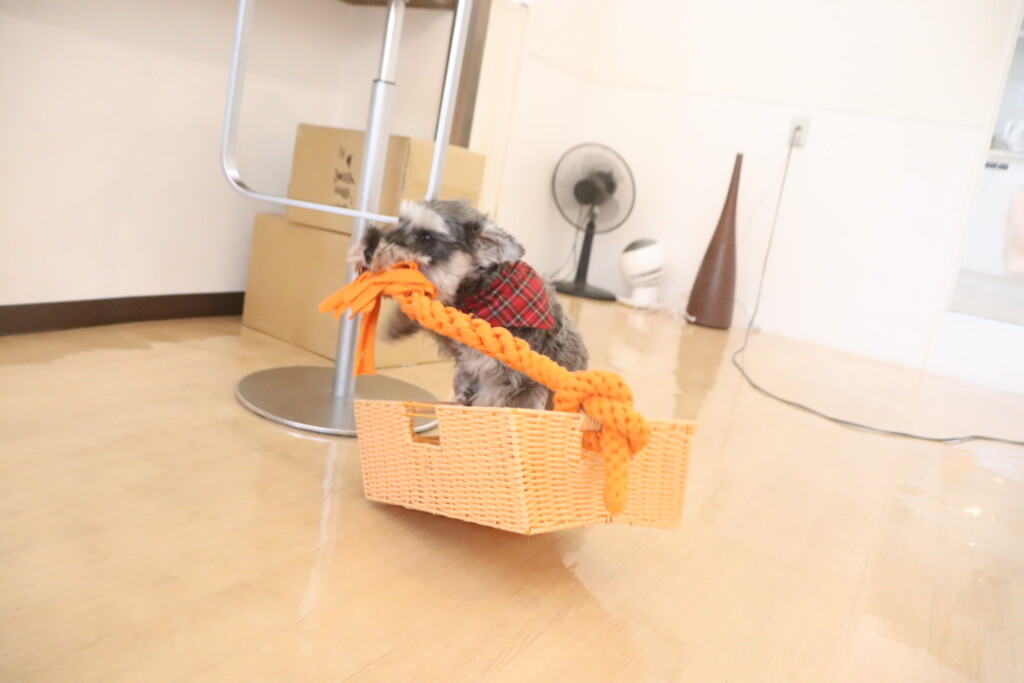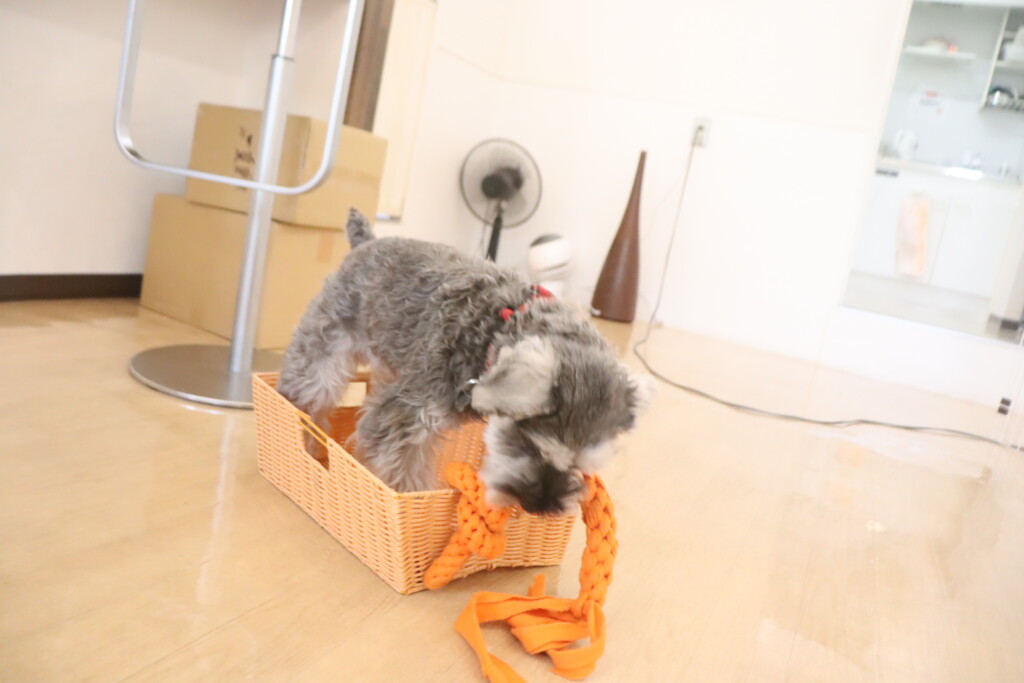 フードがカゴの中に入ってしまったのですが、中だとも知らず外側から「おっかしいな~ここから匂いがするんだけど…?」と一生懸命かじっていて可愛かったです(笑)